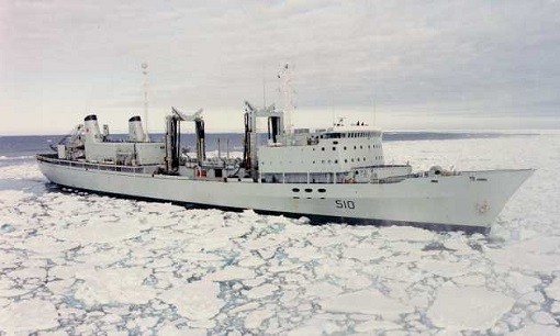 HMCS PRESERVER 510 conducting RAS with HMCS SAGUENAY