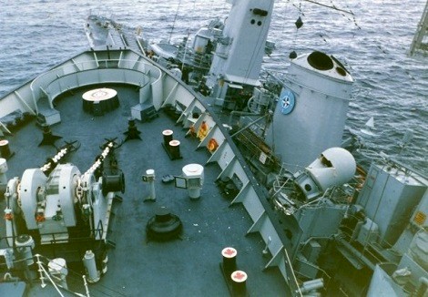 (1) Robert Goodwin on the fo'c's'le of HMCS PRESERVER