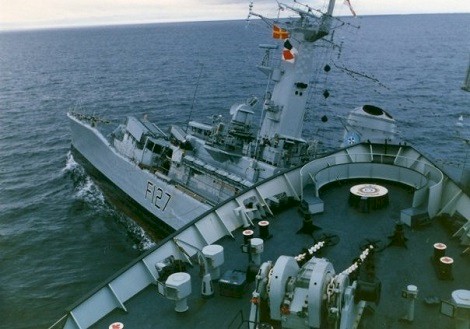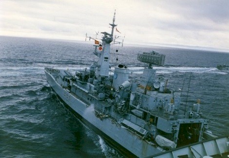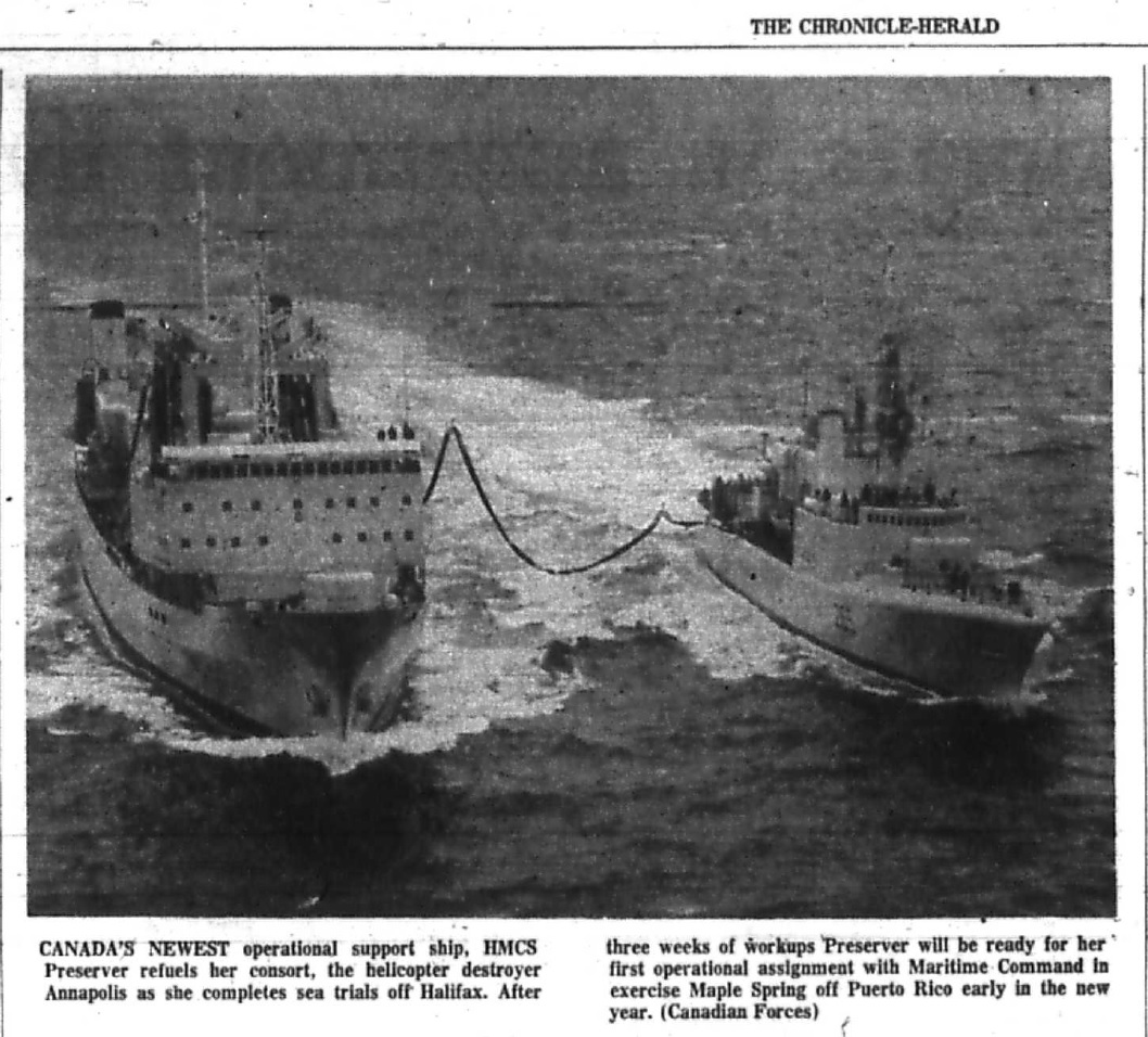between HMCS PRESERVER and HMS Penelope - believed to have been taken