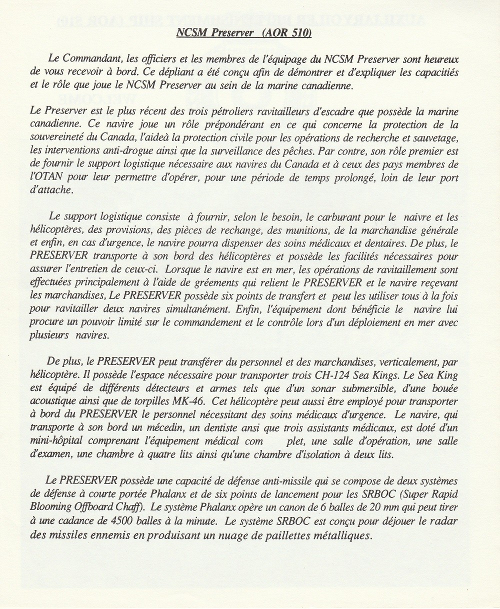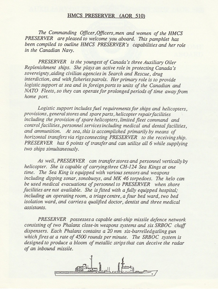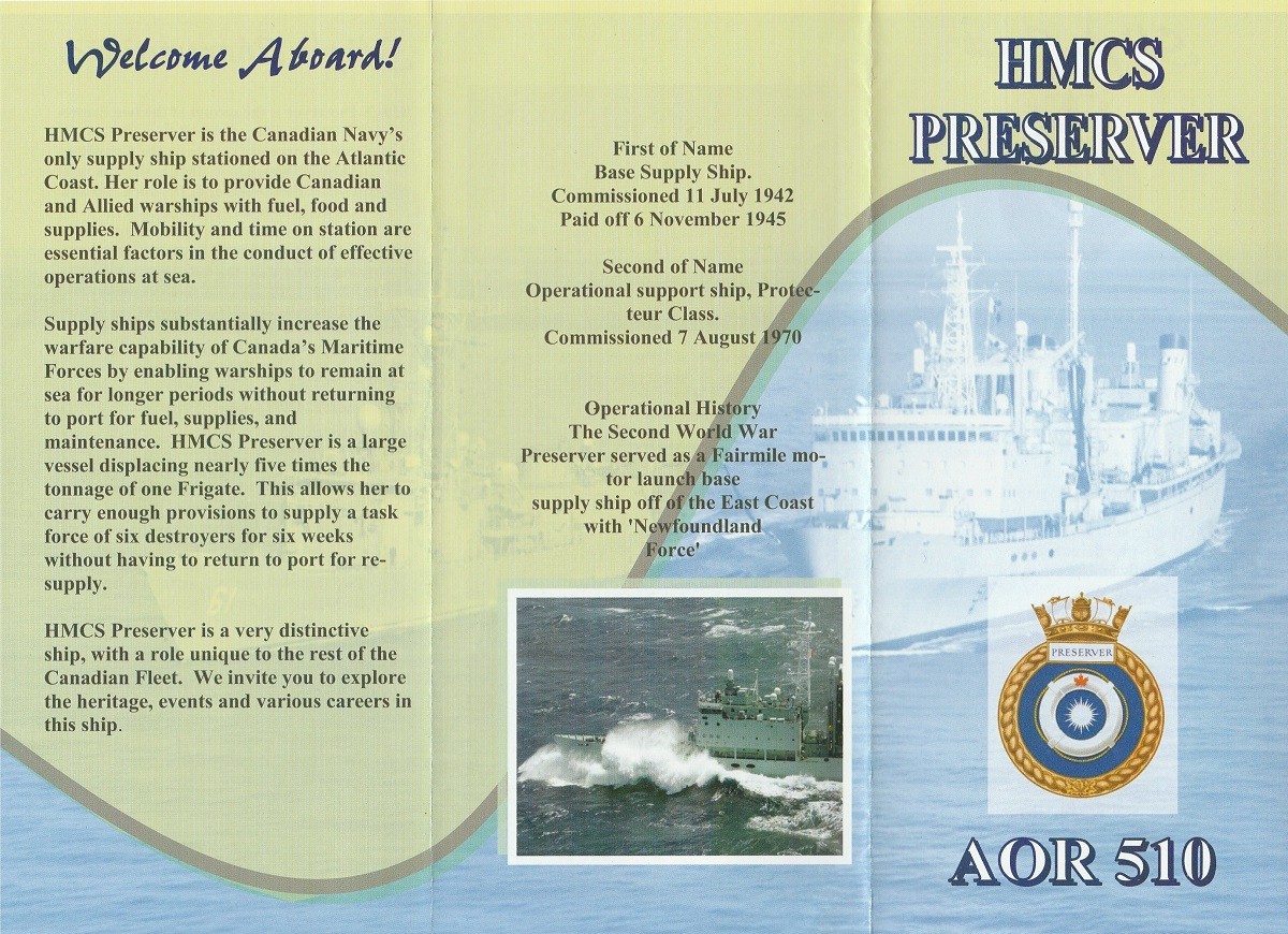 HMCS PRESERVER 510 - Welcome Aboard pamphlet