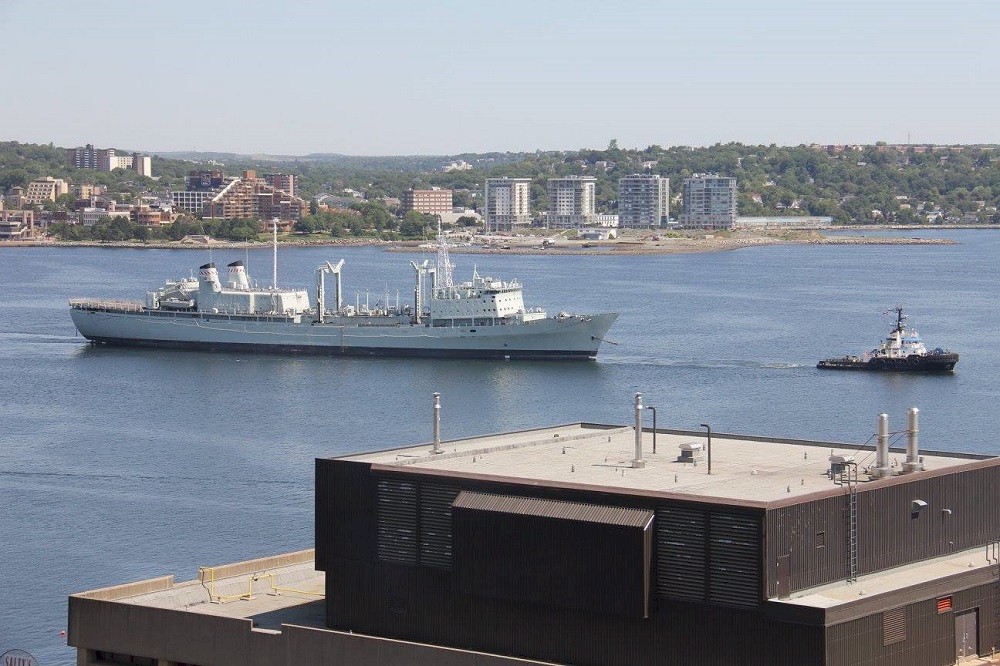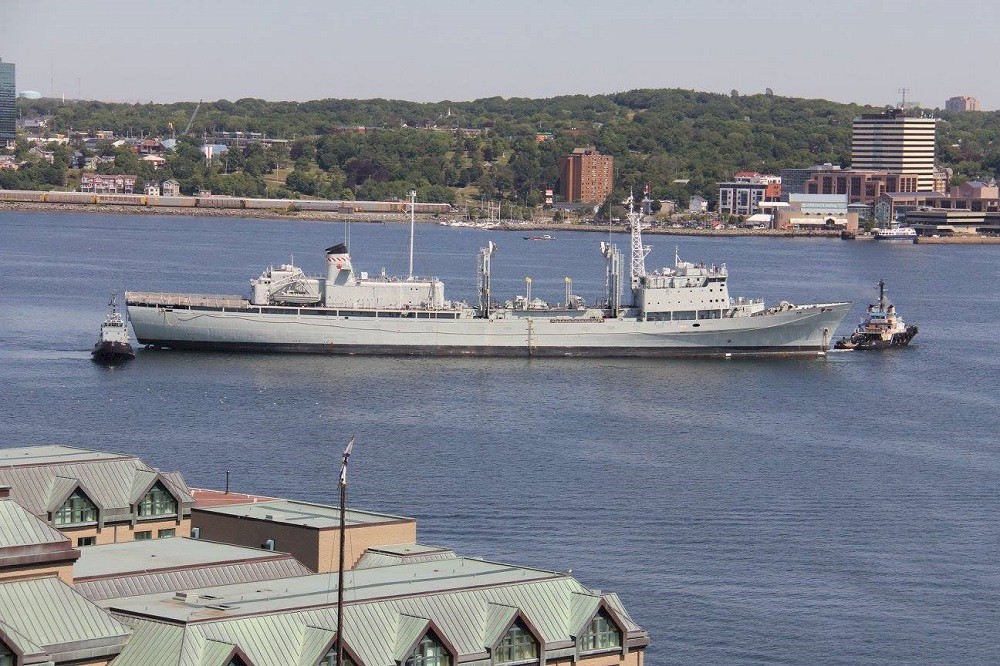 former HMCS PRESERVER 510 is towed out of Halifax destined for the