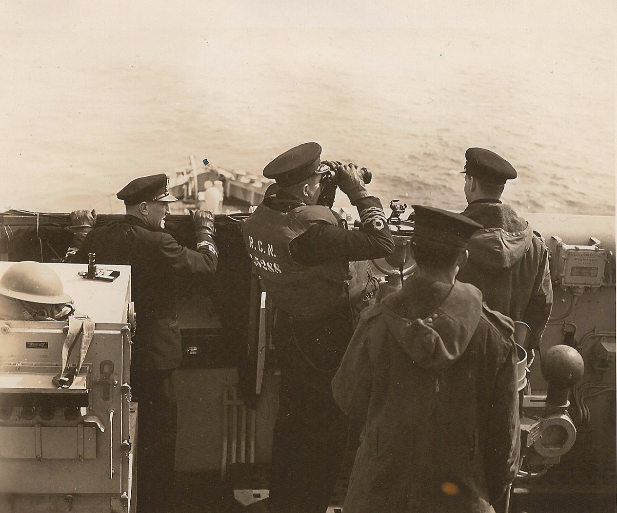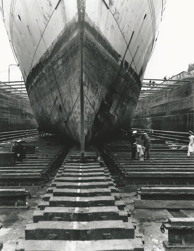 (WW26-WW27) HMCS PRINCE DAVID in dry dock at Ferryville, North Africa for repairs after striking a mine - LAC PA142894, PA211363, PA211363 (WW29) Sailors on HMCS PRINCE DAVID - Aug 1944 - LAC PA211358 (WW30) Looking forward from the signal bridge on HMCS PRINCE DAVID - LAC PA211350