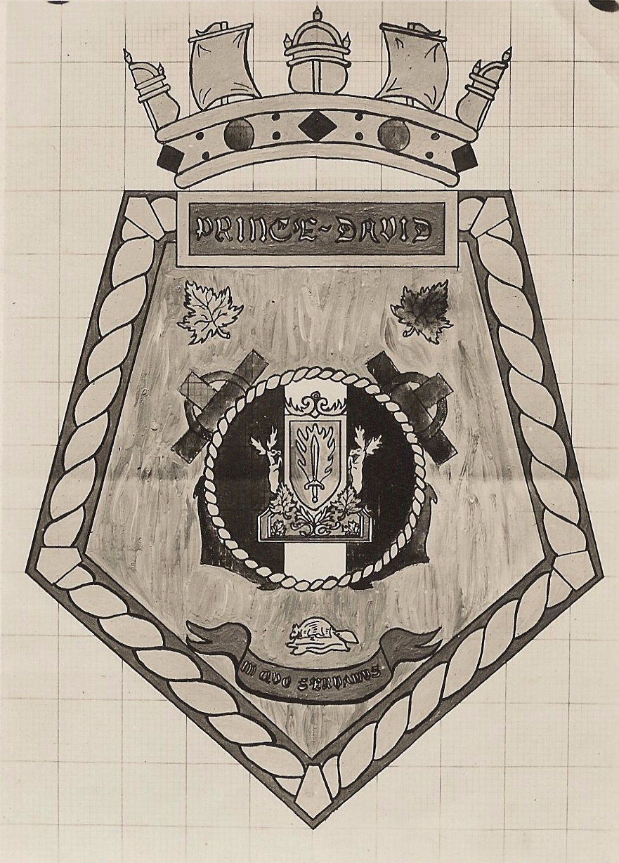 (GG03) Lea Gillard (left) with unidentified officer on HMCS PRINCE DAVID circa Jan 1944 (GG04) On the bridge of HMCS PRINCE DAVID (GG05) Sketch of ship's badge for HMCS PRINCE DAVID (GG06) Unidentified PO.QR 2c on HMCS PRINCE DAVID (GG07) HMCS PRINCE DAVID