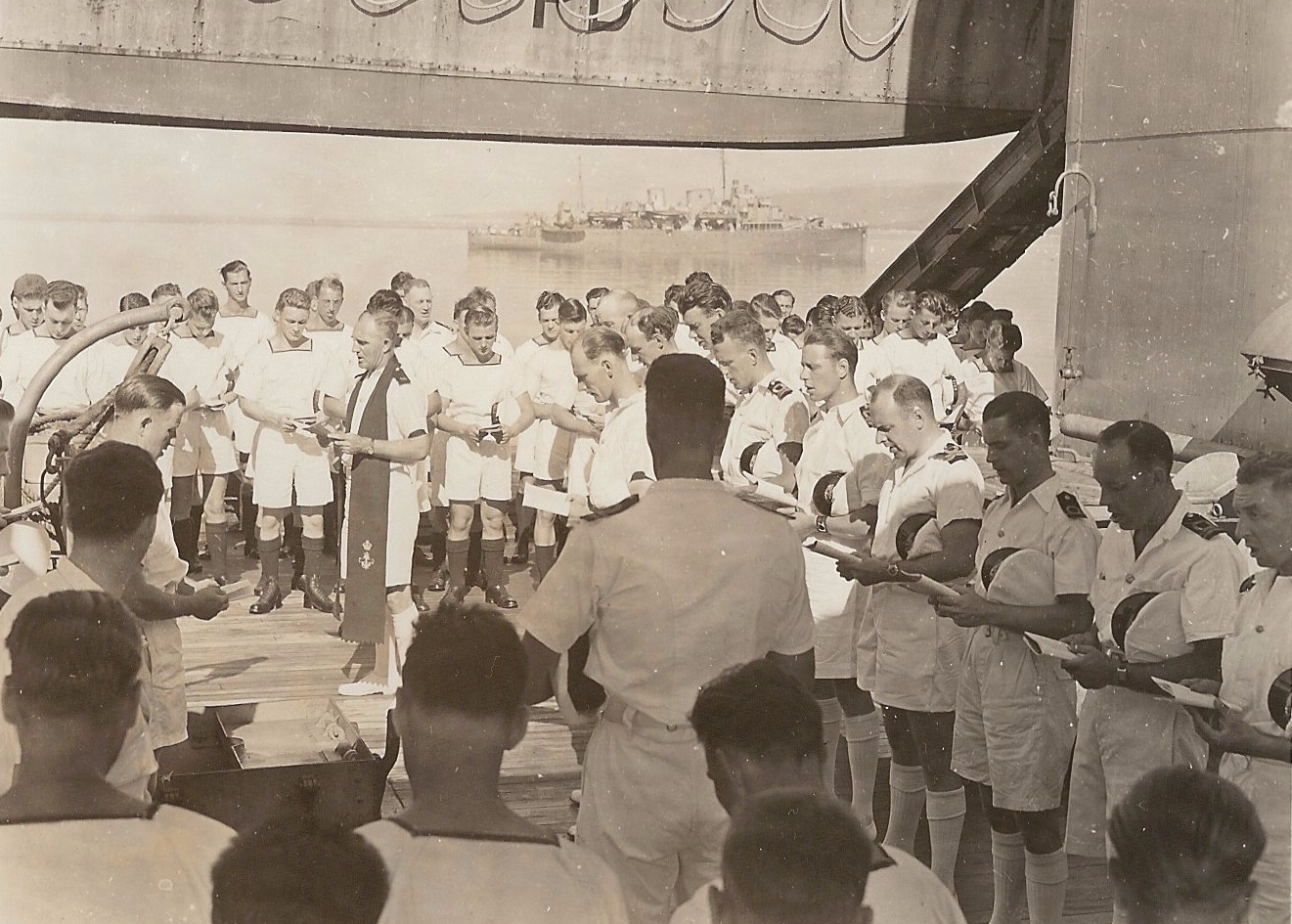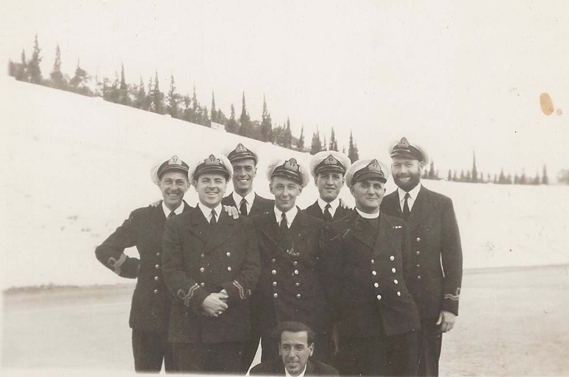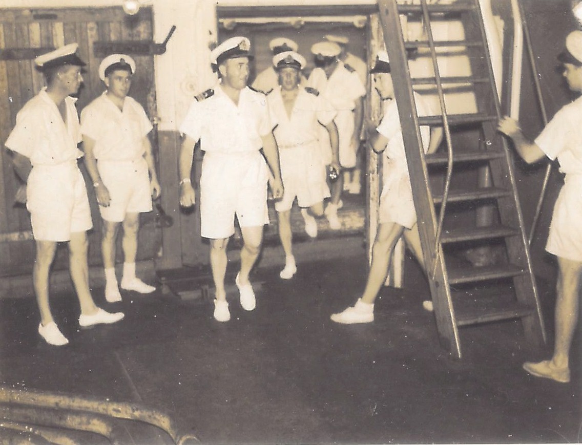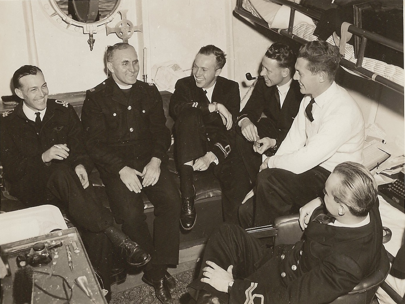 (GG08) Skit night onboard HMCS PRINCE DAVID (GG09) Lea Gillard (2nd from left) with in his cabin on HMCS PRINCE DAVID (GG10) Lea Gillard holding service on HMCS PRINCE DAVID (GG11) Lea Gillard with PRINCE DAVID officers ashore in Greece (GG12) Lea Gillard with PRINCE DAVID officers ashore in Athens, Greece