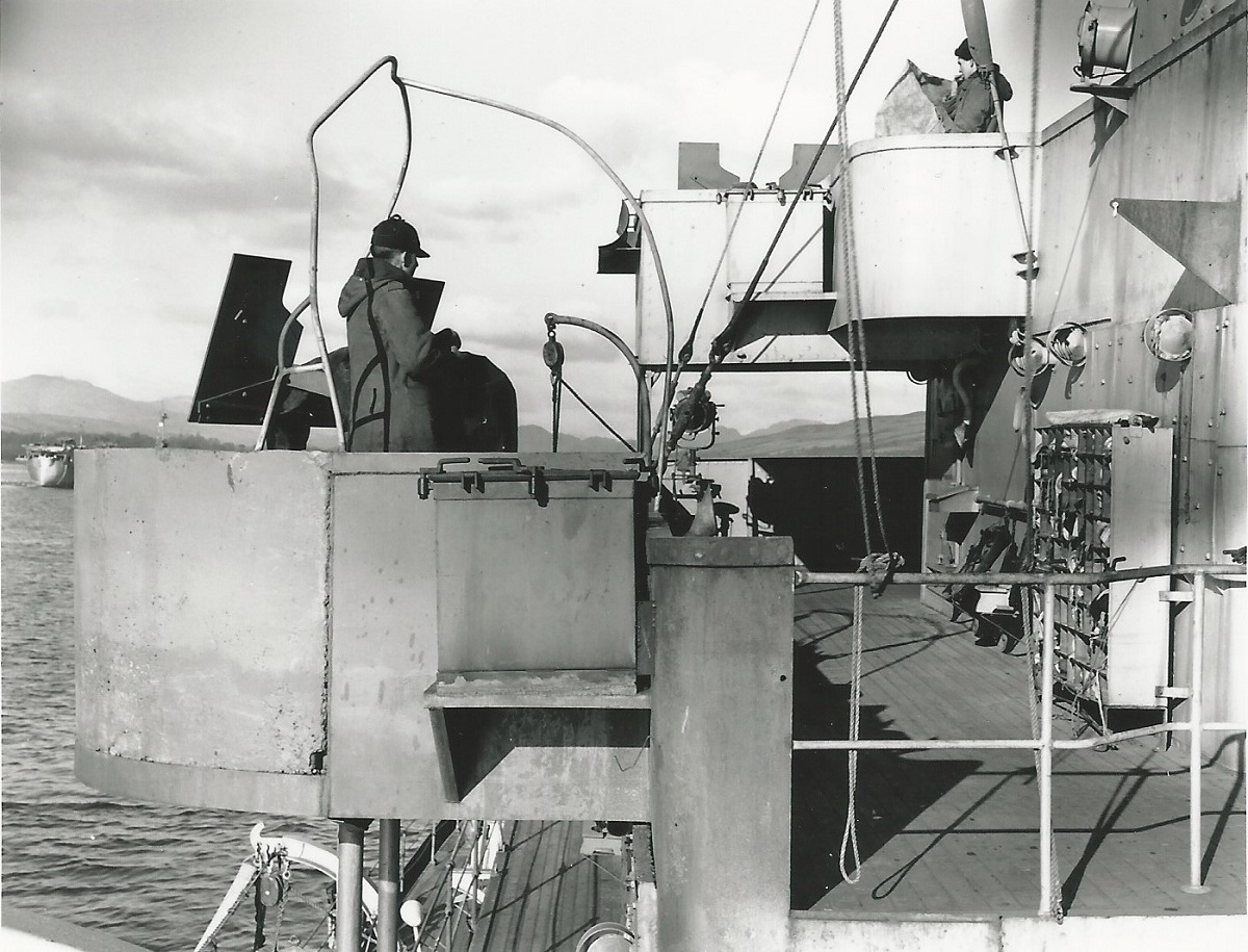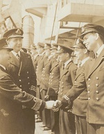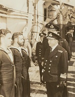 (GG18) Unidentified (Square Rig) Petty Officer onboard HMCS PRINCE DAVID (GG19-GG20) Inspection of PRINCE DAVIDS's crew by visiting Rear-Admiral (GG21) Unidentified Chief Petty Officer placing a shell in the magazine rack on HMCS PRINCE DAVID (GG22) Medical procedure being performed on the ship's mascot on HMCS PRINCE DAVID by Dr. John Beggs.
