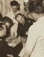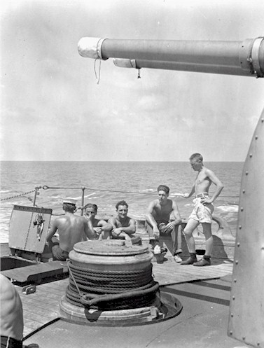 (DL06) Officers on HMCS PRINCE DAVID in southern waters (DL07) Bum Boats in Port of Spain, Trinidad while on HMCS PRINCE DAVID (DL08) Going to Action Stations on HMCS PRINCE DAVID (DL09) Robert Coul off HMCS PRINCE DAVID somewhere ashore - 1941 (DL10) Oxford, an Electrician, in his bunk on HMCS PRINCE DAVID From the collection of Doug Lester, Lt, RCNVR / RCN Courtesy of Matt D'Entremont