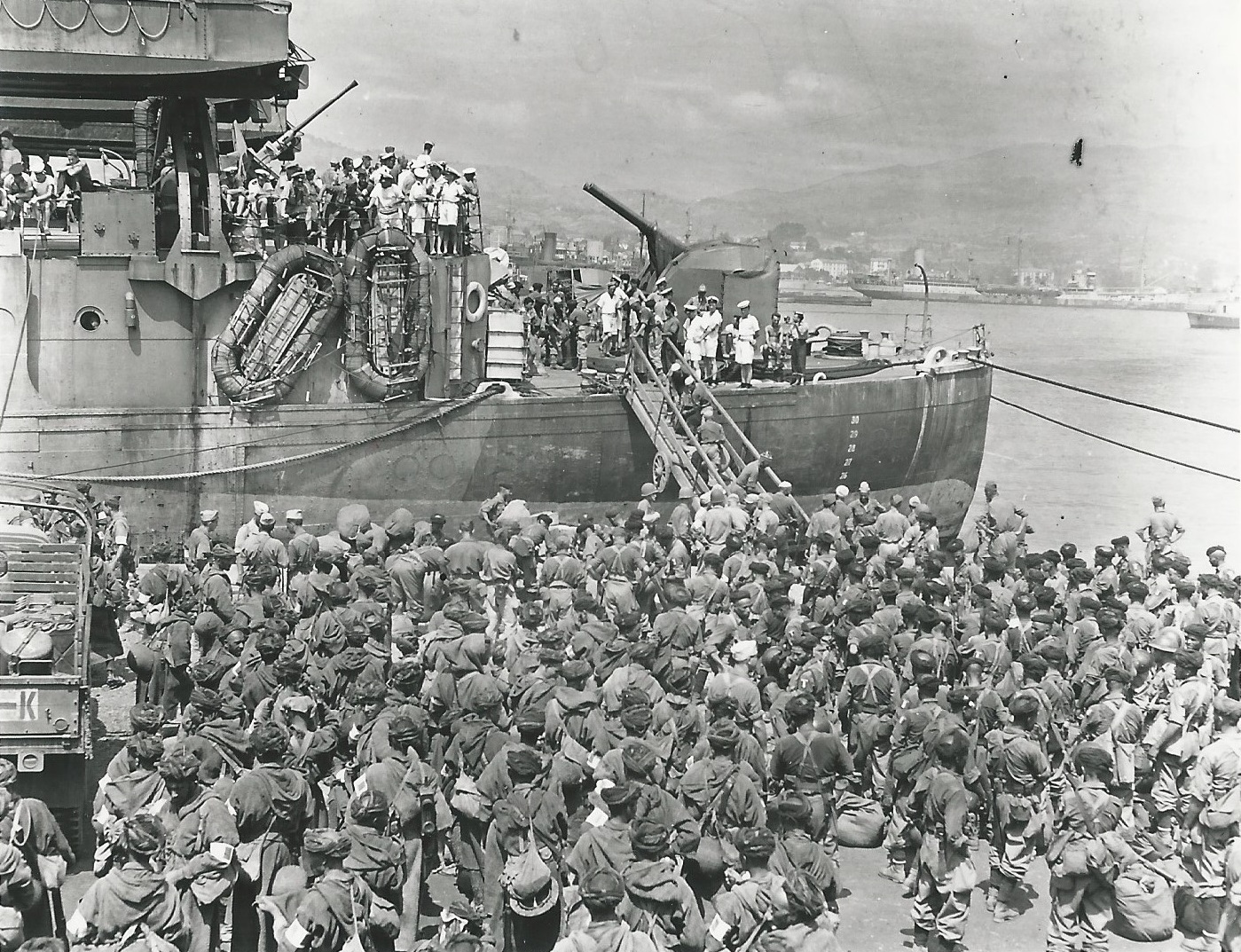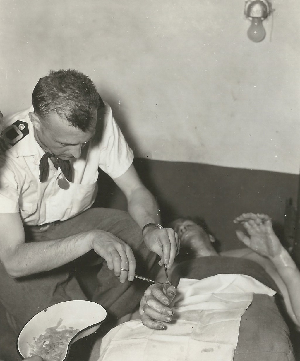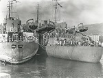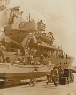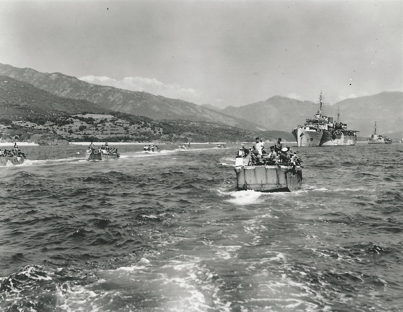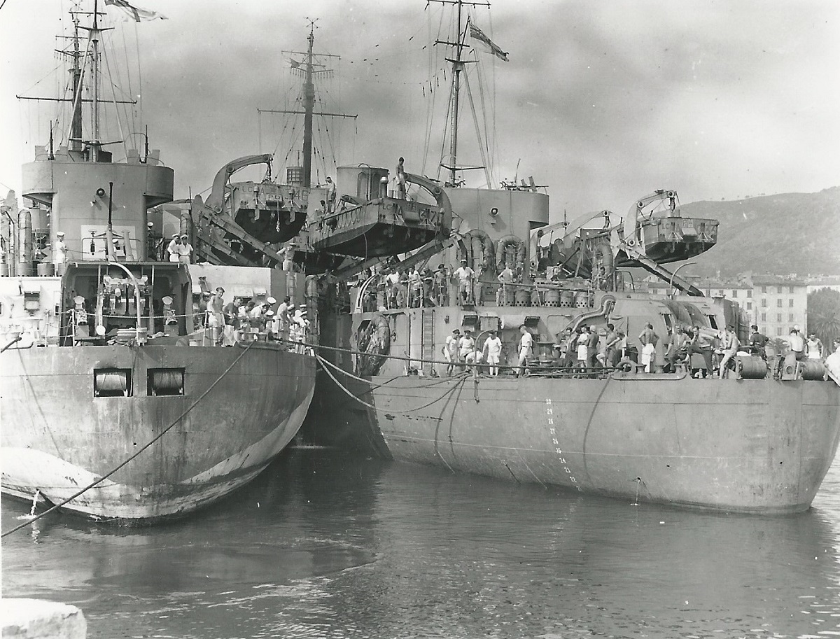 (WW21) Crowded jetty at Ajaccio [sic].” “Loading Senegalese troops in Adjaccio [sic] for S/France invasion July ’44." - LAC PA143834 (WW22) July/44 PRINCE DAVID Med officer works on German “E” boat crew who were sunk and taken prisoner during S/France invasion; prisoners brought to PRINCE DAVID for medical treatment.” (WW23) “PRINCE DAVID landing craft exercising S/France" - LAC PA211357 (WW24) PRINCE DAVID and PRINCE HENRY in Adjacco [sic.] - LAC PA211359 (WW26-WW27)