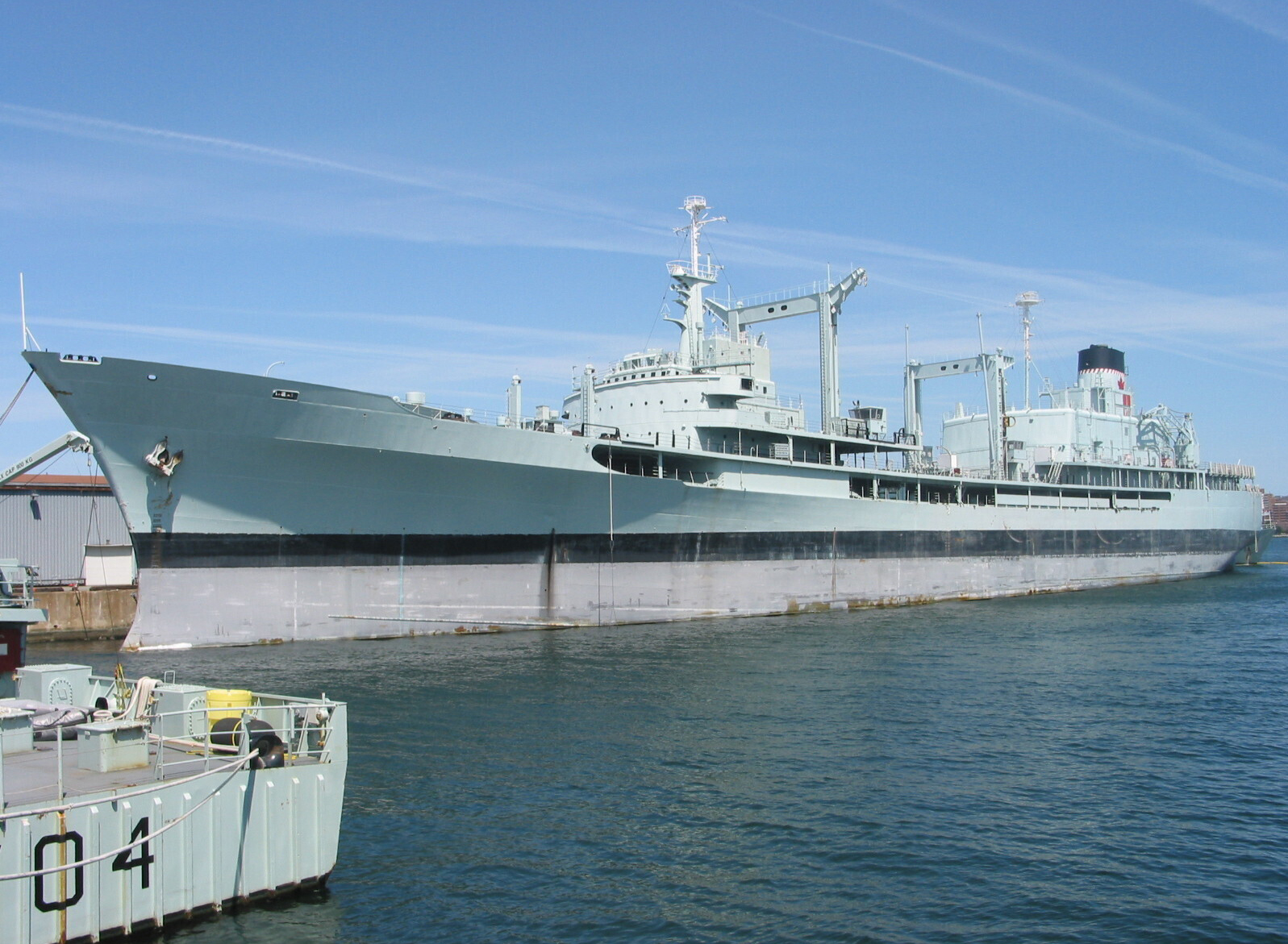 The former HMCS PROVIDER at Halifax, May 5, 2002 shortly before she was towed out of harbour to the breaker's yard.