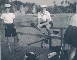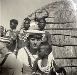 (GD01) Gregory Deck posing with local child while ashore from HMCS QUEBEC. Location unknown (GD02) Gregory Deck (left) ashore with shipmates from HMCS QUEBEC. Location unknown