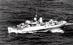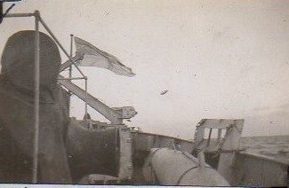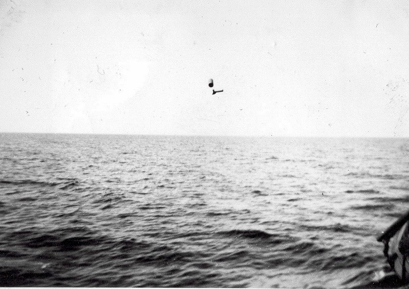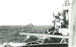 (JS122) HMCS QUESNEL'S After Oerlikon (JS123) Lt John Mackay Laing, Commanding Officer, HMCS QUESNEL by the 4-inch gun (JS124) Mr. Chips - Mascot of HMCS QUESNEL K133 (JS125) Smoke Float astern of HMCS QUESNEL K133 (JS126) HMCS QUESNEL laying a smoke screen
