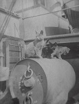 (JS065) "Tex" and "Cox'n" jacking around on HMCS QUESNEL K133 (JS066) LTO Lucas and mascots on HMCS QUESNEL K133 - Sep 1941 (JS067) HMCS QUESNEL'S mascots on a depth charge onboard HMCS QUESNEL K133 (JS068) Jim Silvester by the 4-inch gun on HMCS QUESNEL