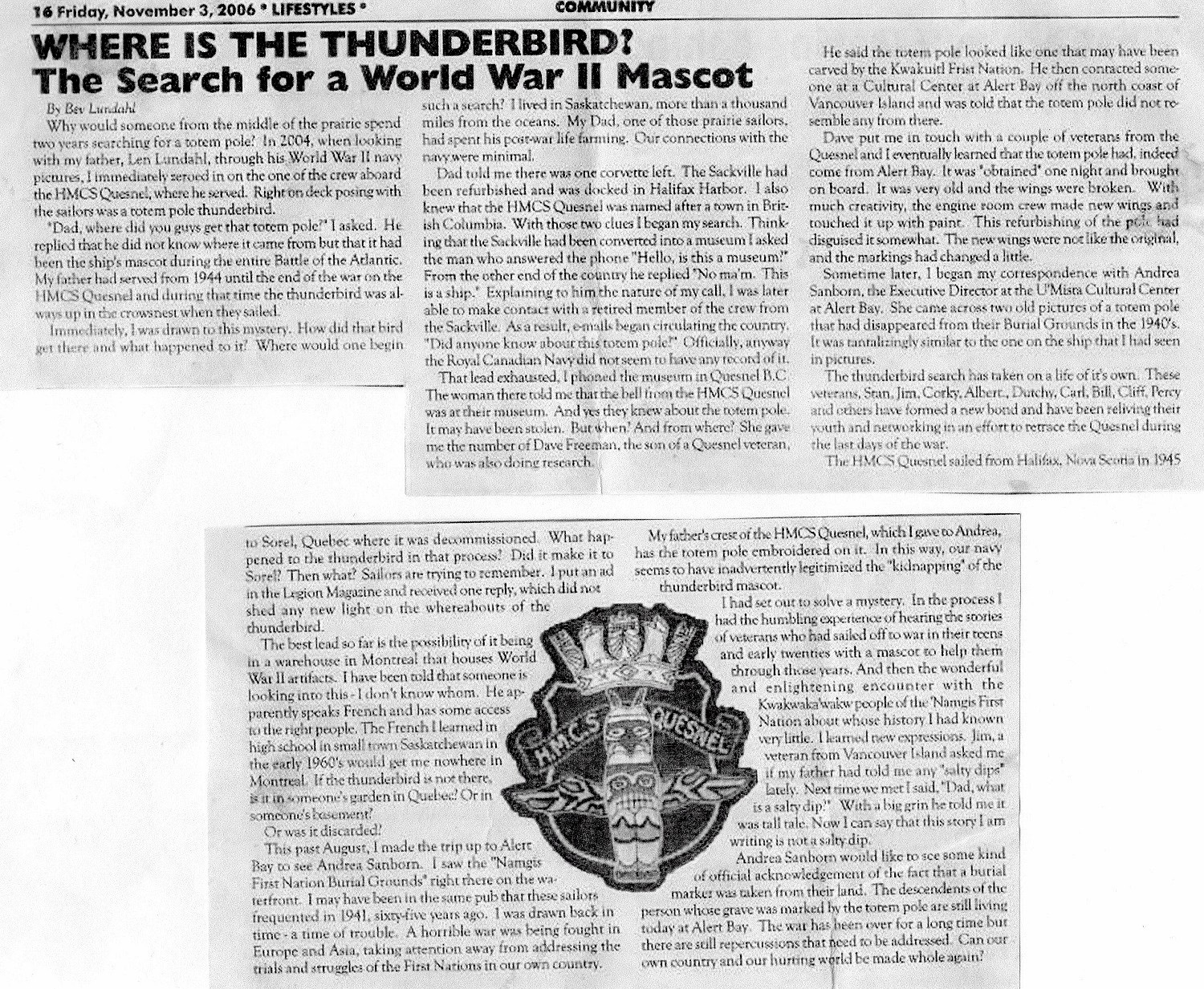 Photos and Documents Ship's company photos What happened to HMCS QUESNEL'S Thunderbird?