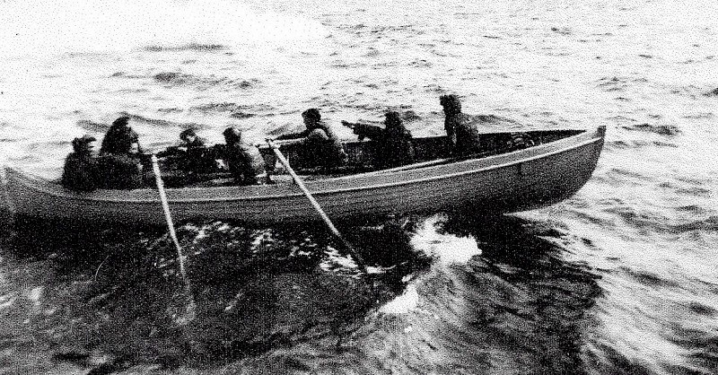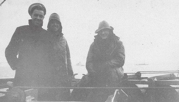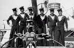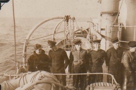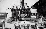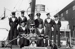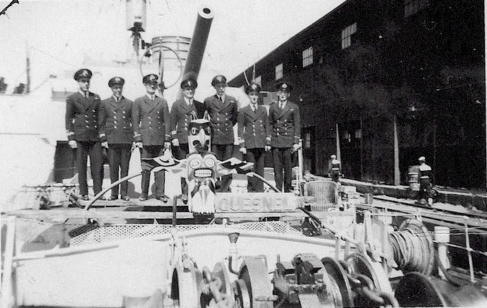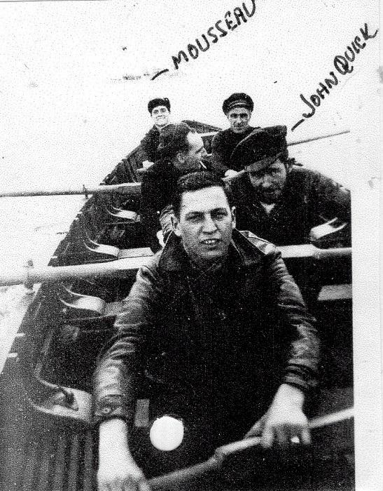 (JS227) McCarron on HMCS QUESNEL K133 (JS228) Simpson (JS229) Duggan (JS230) Hayes and Godfrey (JS231) Boat's crew - Mousseau and John (Jack) Quick - remainder unknown
