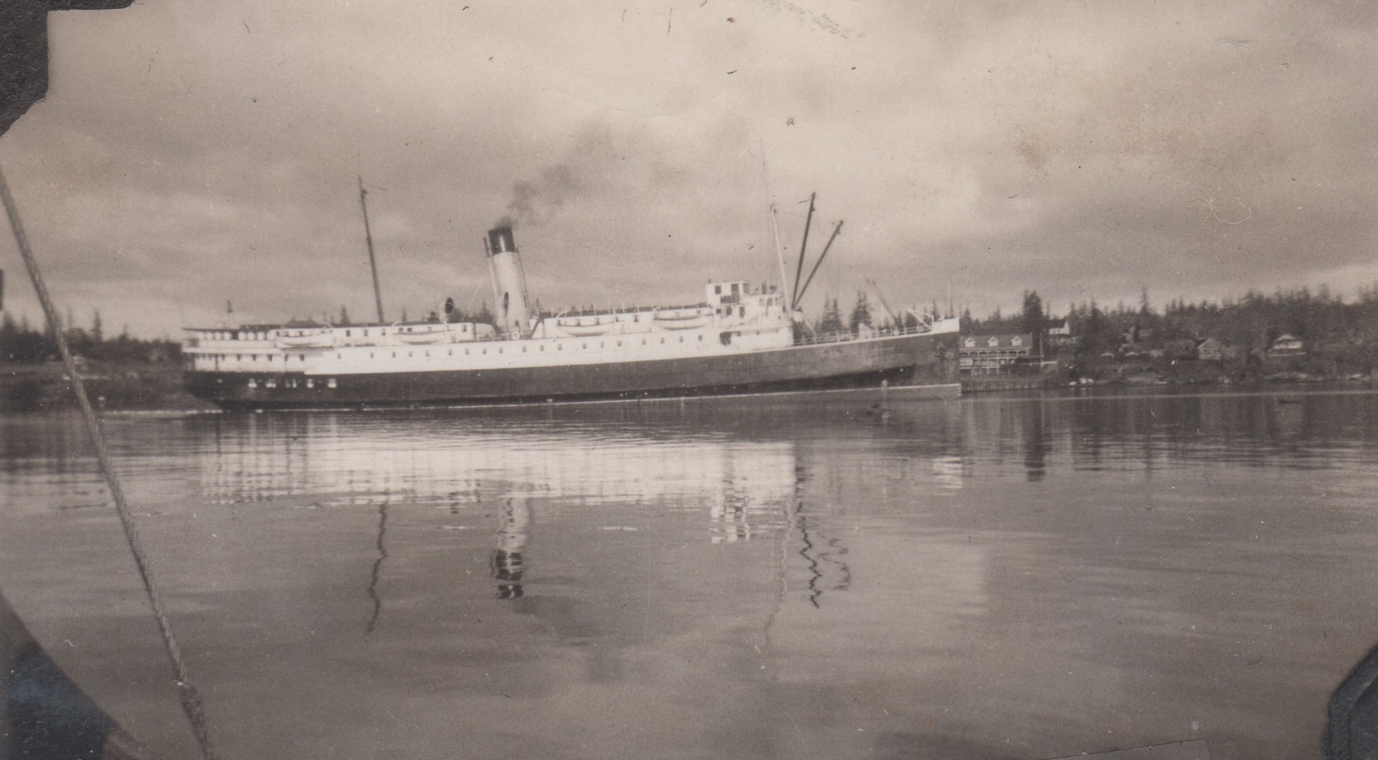 (JS084 - JS086) Battleship HMS WARSPITE at the Nanoose Bay range, BC. Photos taken from HMCS QUESNEL K133 while she was tender to HMS WARSPITE (JS087) CPR's "pocket liner" Princess Alice. Photo taken from HMCS QUESNEL K133
