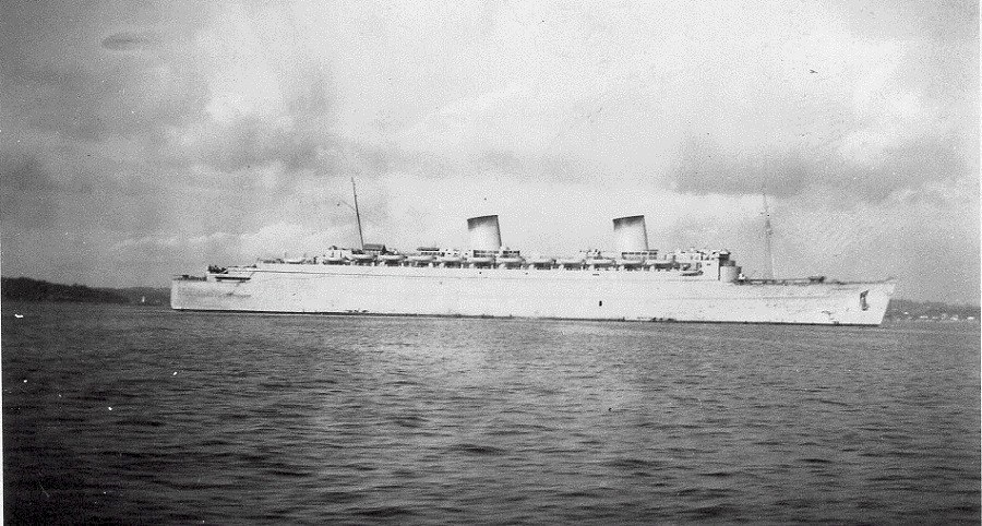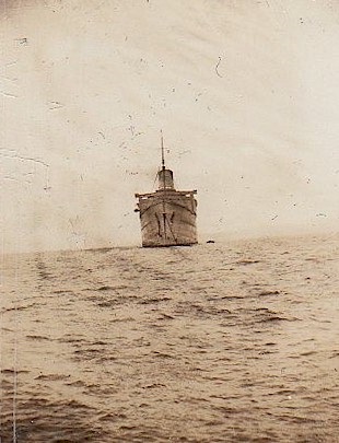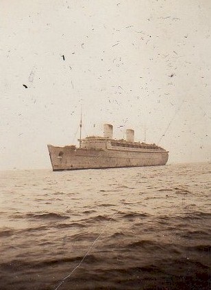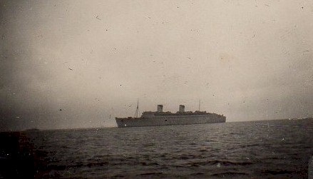 (JS088 - JS091) RMS Queen Elizabeth - Photos taken from HMCS QUESNEL. HMCS QUESNEL was screening the Queen Elizabeth while she waited for the right tide conditions to enter dry dock.