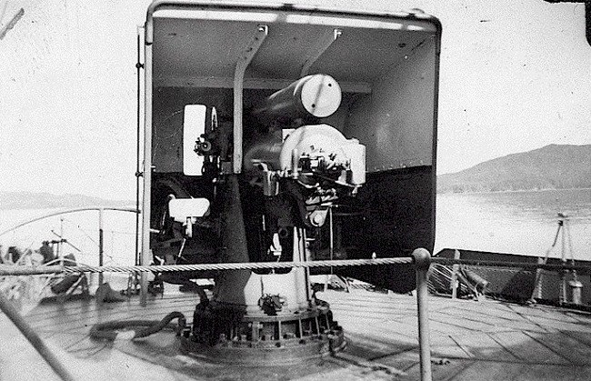 (JS092) HMCS QUESNEL K133 rounds up Japanese fishing trawlers - Dec 1941 (JS093 - JS094) 4-inch gun of HMCS QUESNEL K133 (JS095) A/S Barrett on HMCS QUESNEL K133 (JS096) Bill Agland on the Twin .5s on HMCS QUESNEL, Feb 1942