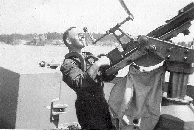 (JS117) H.A. Maubert on HMCS QUESNEL K133 - Dec 1941 (JS118) Signalmen Harry Bloomfield and Les on HMCS QUESNEL K133 (JS119) Ernie Knott and Bud Bawden on HMCS QUESNEL K133 (JS120) QR3 Ed Healy, A/S Don Bosma, AND CPO TC Jack McKeown, Cox'n on HMCS QUESNEL K133 (JS121) HMCS QUESNEL'S Starboard Oerlikon firing