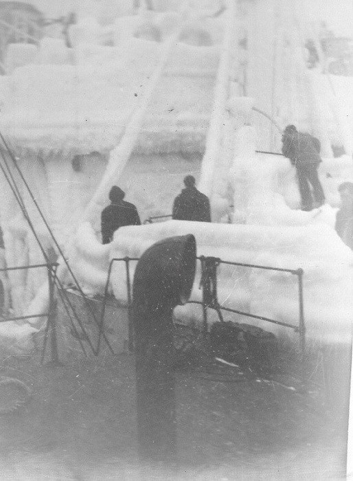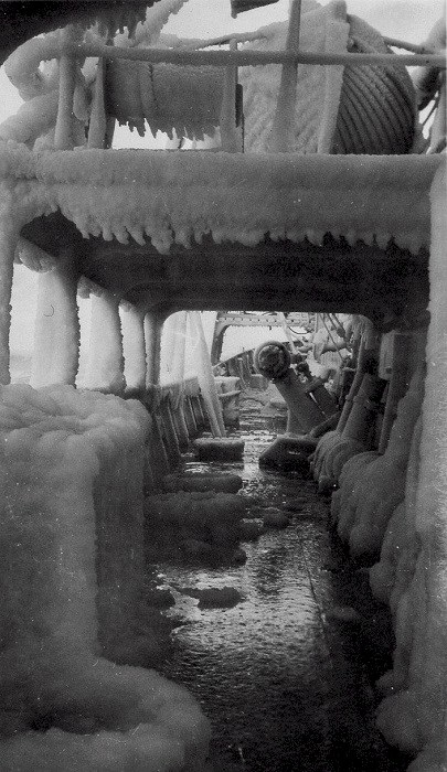 HMCS QUESNEL iced up after returning from convoy duty, Dec 1942 (JS170) Eddie Middleton