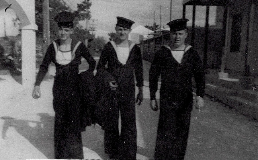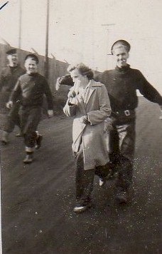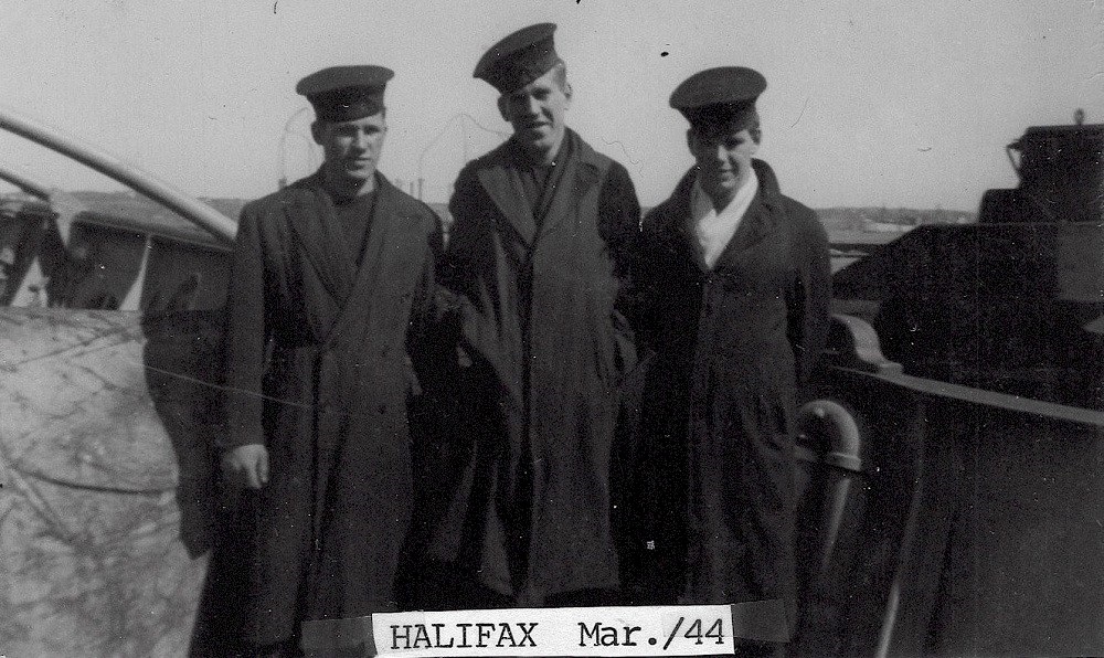 (JS196) Bill Godfrey, Jim Silvester, Charlie Bedford on HMCS QUESNEL K133, Halifax - Mar 1944 (JS197) Albert Jeffries, Bob Duggan, Jim McCarron (JS198) Unknown sailor on HMCS QUESNEL K133 (JS199) Theresè and Bob Kett in Quebec (JS200) Bob Kett, Bill Godfrey, Jim Silvester