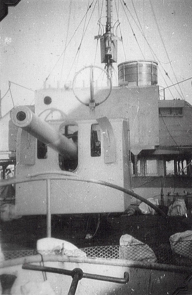 HMCS QUESNEL iced up after returning from convoy duty, Dec 1942 (JS145) 4-inch gun (JS146) the Bridge (JS147) Lt Douty by the 4-inch gun (JS148) the 12-pounder gun (JS149) Starboard side just forward of the bridge, facing aft