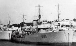 (JS242) HMCS KAMLOOPS K176 (left) and HMCS SWIFT CURRENT J254 seen from HMCS QUESNEL K133 (JS243) The end is near - QUESNEL in Sorel after being paid off. Note that the Thunderbird is gone from the mast From the collection of Jim Silvester, PO1, RCNVR, RCN Courtesy of Jim Silvester