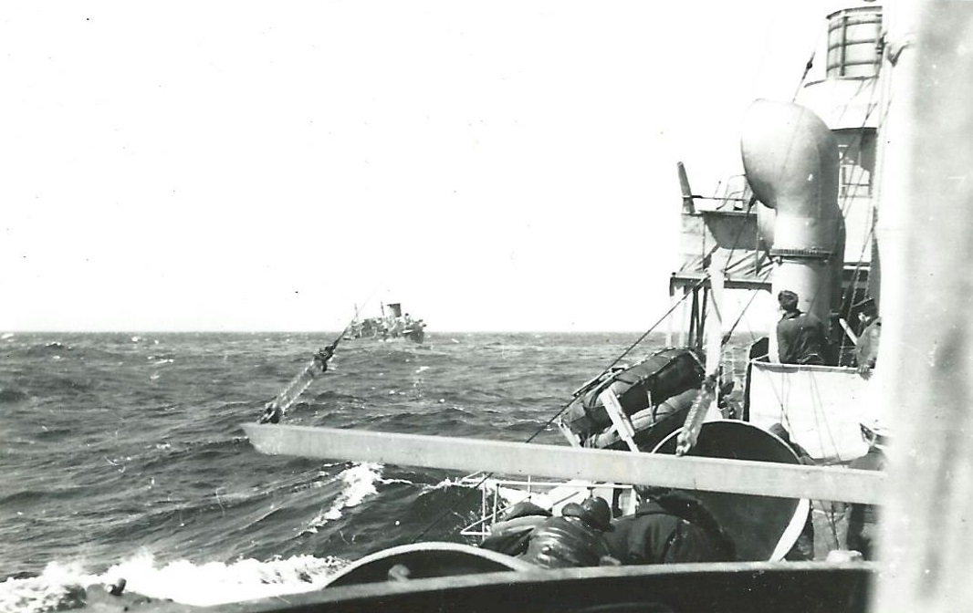 (FH001) "A Bucking Bronco" and "Riding them hard" (FH002) Bridge of HMCS QUESNEL K133 (FH003) HMCS QUESNEL K133 refuelling in the North Atlantic (FH004) Convoy HX.292, NYC to Liverpool, departed New York City on 19 May 1944 with 132 ships and 7 escorts. At the time it was the biggest convoy of the war (a later convoy had 166 ships). Other escorts joined a few days later, but until they joined on the 21st, HMCS Vancouver, HMCS CHICOUTIMI, HMCS PORTAGE, HMCS KAMSACK, HMCS THE PAS, HMCS BUCTOUCHE and HMCS QUESNEL were responsible for the protection of this massive convoy.