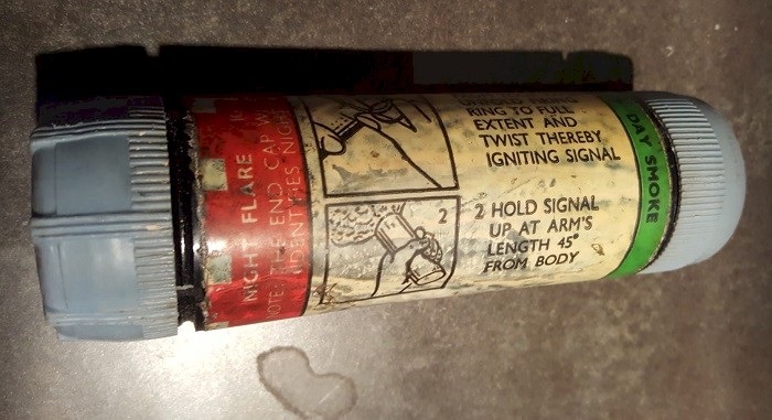 Lift raft signal flare from HMCS QUESNEL K133 From the collection of Milton Giles Courtesy of Kurtis Giles