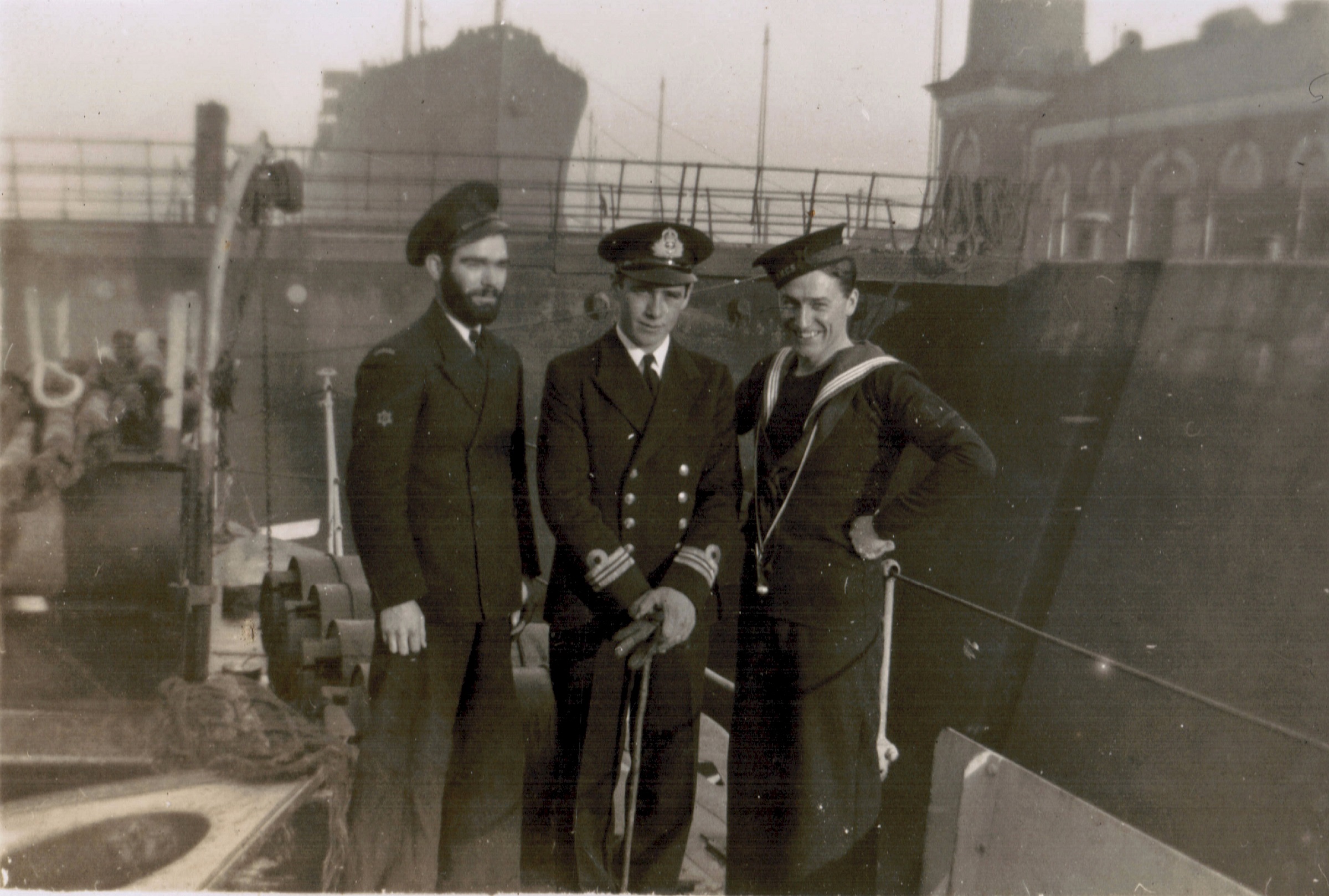 Photo (JB02) of SA Burchell, LCdr Bianco and OS Piers is from the collection of SA John Burchell, RCNVR