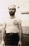(JB01) SA Burchell on HMCS RESTIGOUCHE. Note the USN sailors cap he is wearing (JB02) Stores Assistant John Burchell, "LCdr" Bianco and "OS" Desmond Piers, HMCS RESTIGOUCHE H00, Christmas 1942 ** (JB03) "OS" Desmond Piers and "LCdr" Anthony Bianco on HMCS RESTIGOUCHE - Christmas 1942 (JB04) "OS" Piers, "LCdr" Bianco and CPO Bissky (Chief Bissky is wearing an OS or AB ratings uniform) (JB05) Sailors fallen in on HMCS RESTIGOUCHE - SA John Burchell, front, centre, with beard. This photo is likely the Stores, Stewards, SBA and ** A longstanding naval tradition is that on Christmas Day the CO of the ship trades places with the youngest sailor on the ship. In this photo, OS Anthony Bianco trades places with LCdr Desmond Piers, CO of HMCS RESTIGOUCHE H00 - and became LCdr Bianco for the day and LCdr Piers became Ordinary Seaman Piers for the day - Christmas 1942.