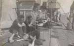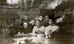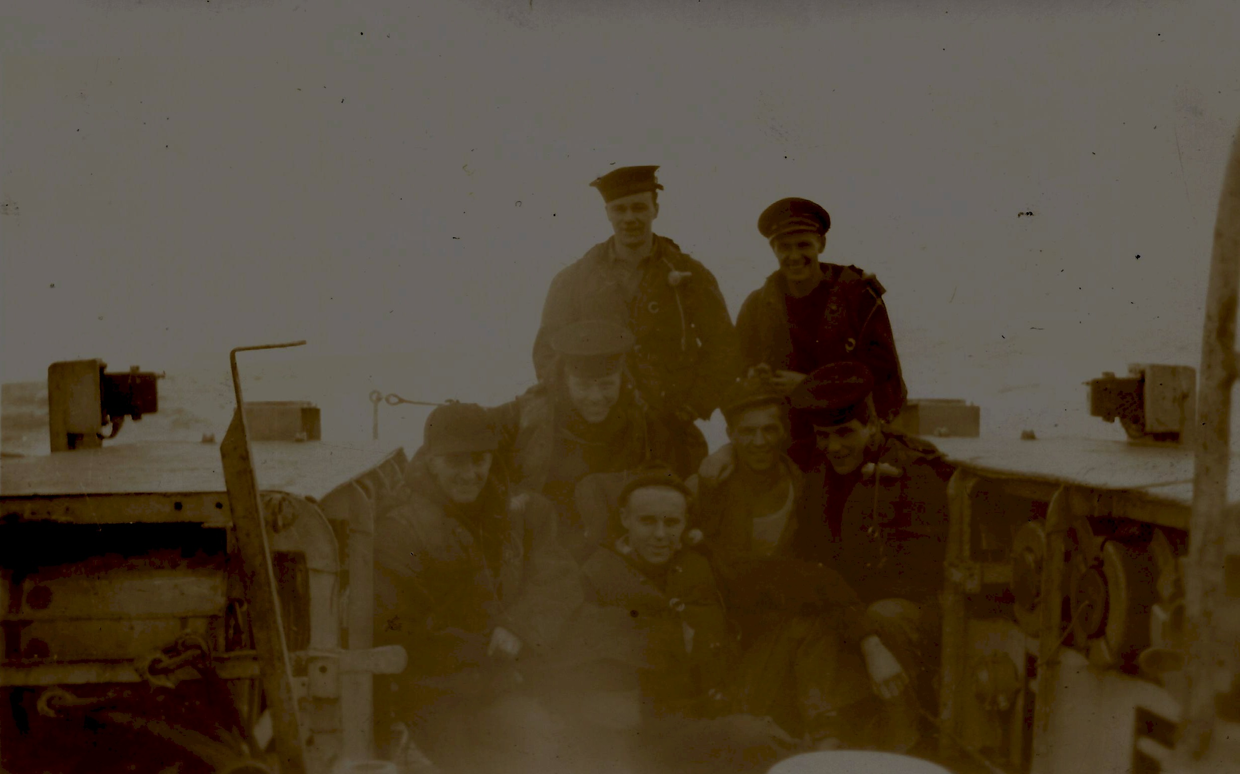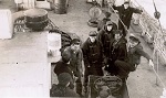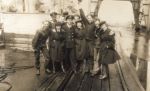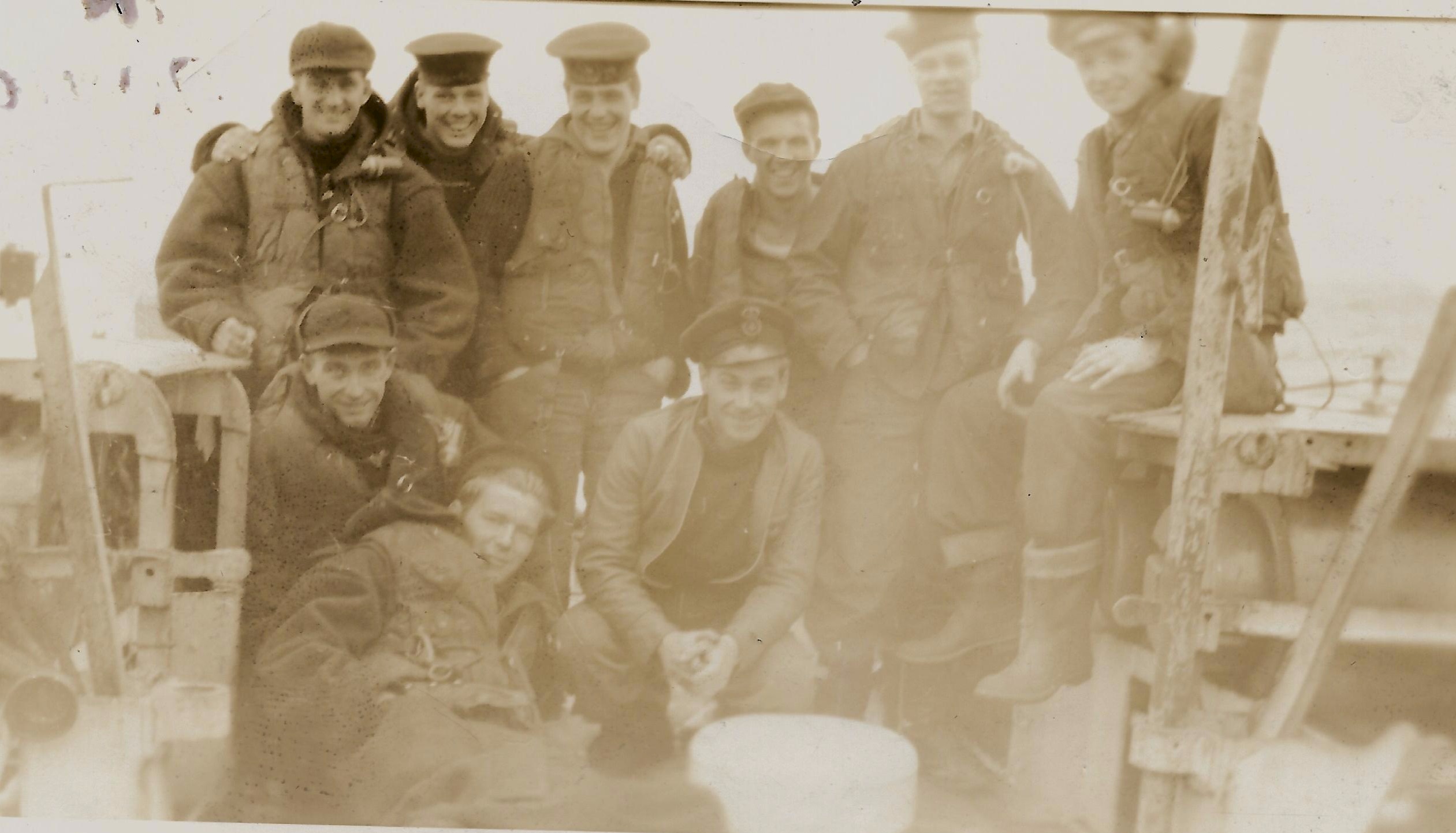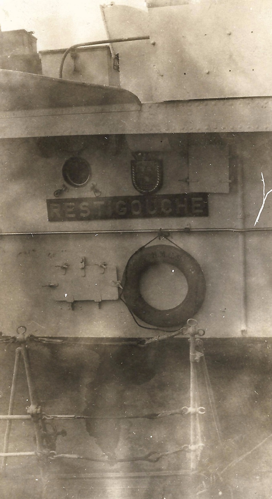 (RC37) Sailors between the depth charge rails on HMCS RESTIGOUCHE: Back: Edmonds, Bremner, Soper, Teeple; Middle: Bowes, Robinson; Front: Wilson (cook) (RC38) Sailors between the depth charge rails on HMCS RESTIGOUCHE - Back: Soper, Teeple; Middle: Edmonds, Bremner, Bowes, Robinson; Front: Wilson (cook) (RC39) Sailors between the depth charge rails on HMCS RESTIGOUCHE - Back: L-R: Edmonds, Bremner, Robinson, Bowes, Soper, Robb; Front: Ron Critchley (laying down) other two unknown (RC40) Cooks Lovelace, Wilson and Morris on HMCS RESTIGOUCHE (RC41) U-boat survivor on HMCS RESTIGOUCHE