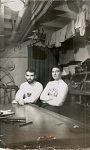 (JB11) Readying a smoke float on HMCS RESTIGOUCHE - Jules Lafpointe, Peter Rigg T.I., Allan Morton (JB12) Ship's Medical Officer on HMCS RESTIGOUCHE (JB13) SA John Burchell and Cook Joseph (Pop) Brousseau on HMCS RESTIGOUCHE (JB14) Doug Henderson, Jimmie Finn, Gus Lafontaine, Roger Laiselle (of Montreal) and Chillcot on HMCS RESTIGOUCHE. Jimmie Finn is the first on the left facing the camera (JB15) 11 Mess on HMCS RESTIGOUCHE - 1942. MacMath, Sterns, Gus Lafontaine, Morton, Pate, Jimmie Finn, John Burchell. Finn and Burchell wearing white sweaters