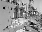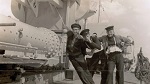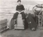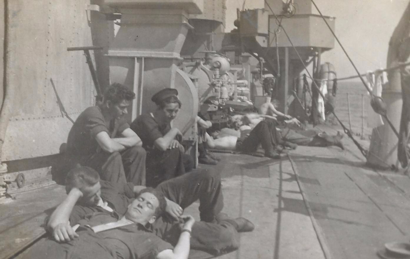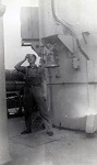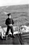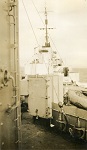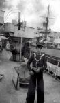 (RC32) L-R: PO Murray Robb, Ron Critchley and unknown sailor on HMCS RESTIGOUCHE (RC33) Sailors on the quarterdeck of HMCS RESTIGOUCHE. Ron Critchley, standing 1st on left (RC34) Off Watch relaxing on the upper deck on HMCS RESTIGOUCHE (RC35) Ron Critchley sitting on gun barrel on HMCS RESTIGOUCHE (RC36) PO.ER Murray Robb by secondary gun on bridge wing of HMCS RESTIGOUCHE