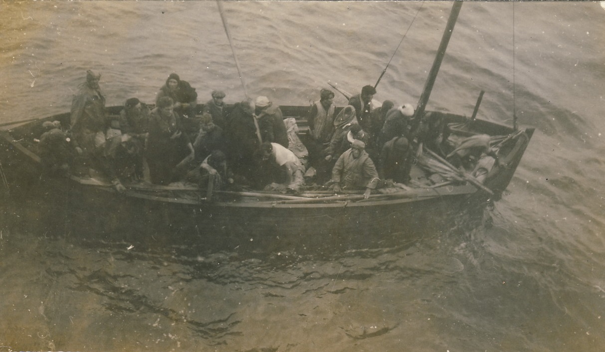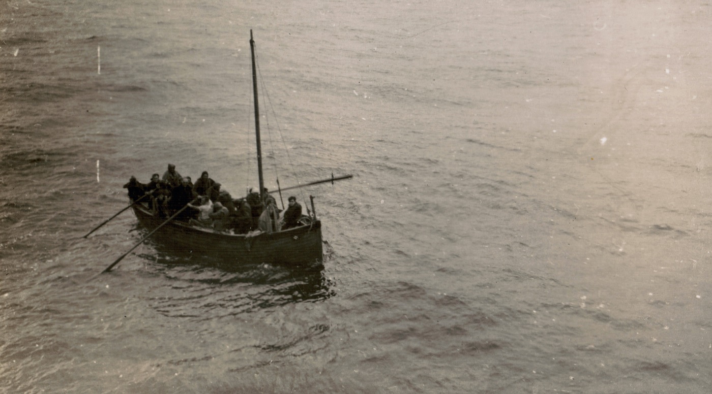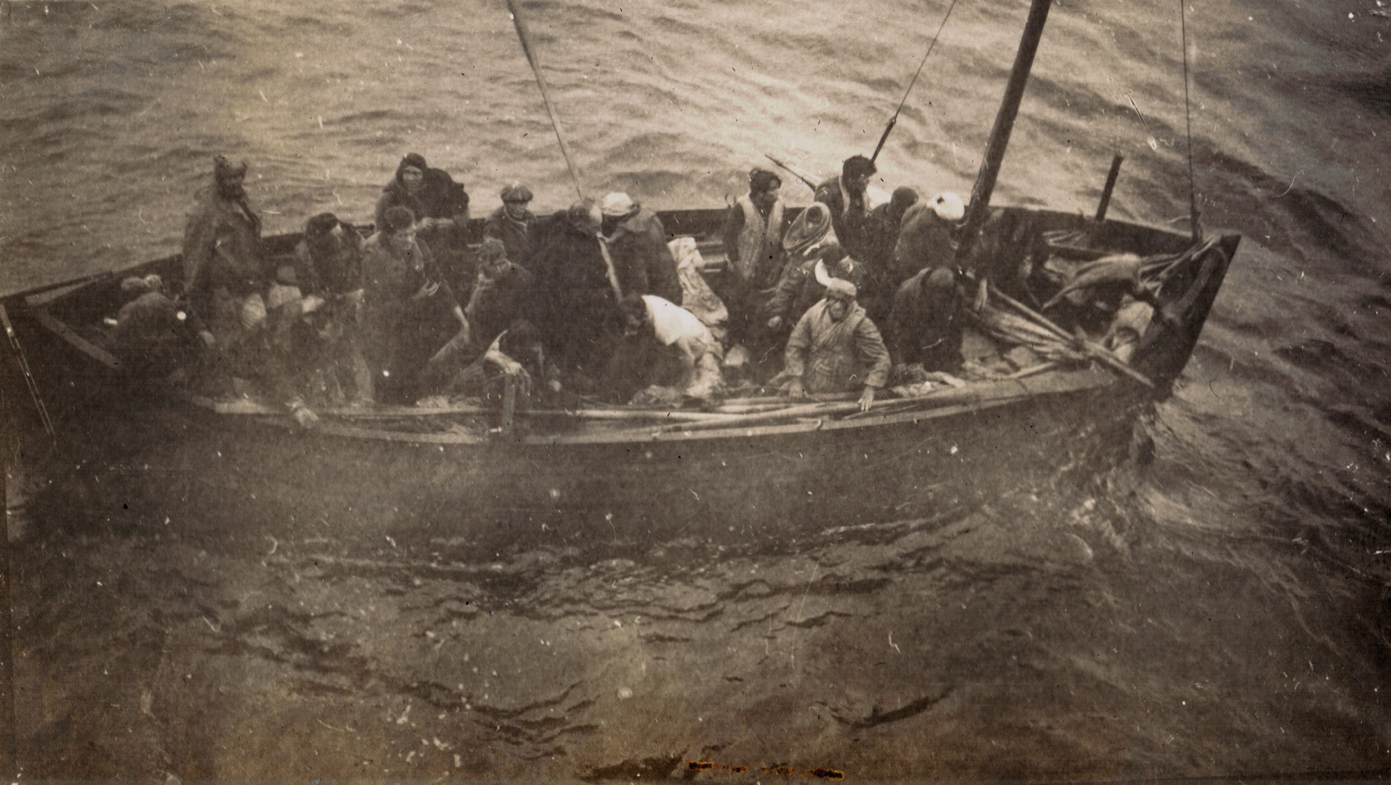 (OM15-OM18) HMCS RESTIGOUCHE H00 picking up survivors from the SS Blitar that had been sunk on 05 Apr 194