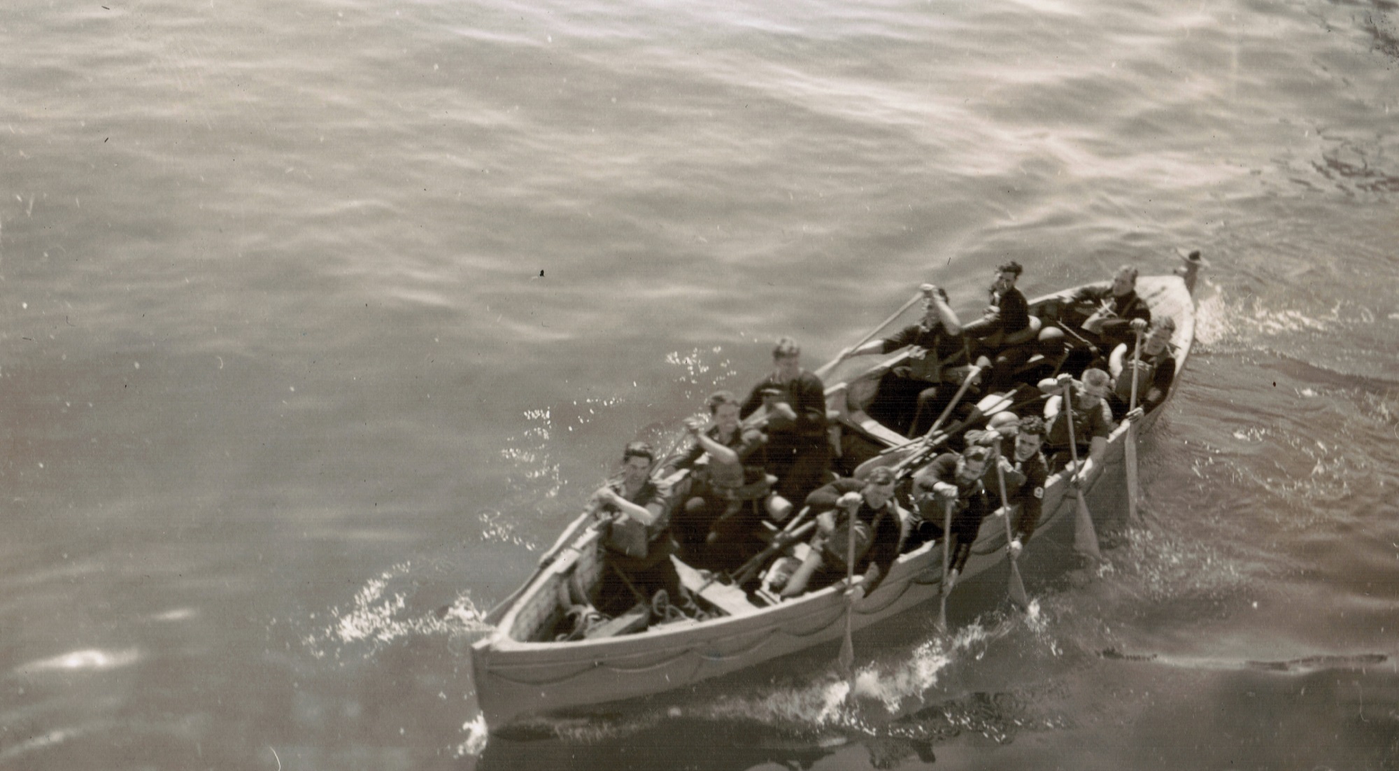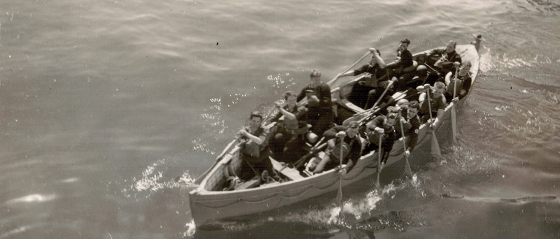 (JB33) Training in rowing the sea boat from HMCS RESTIGOUCHE