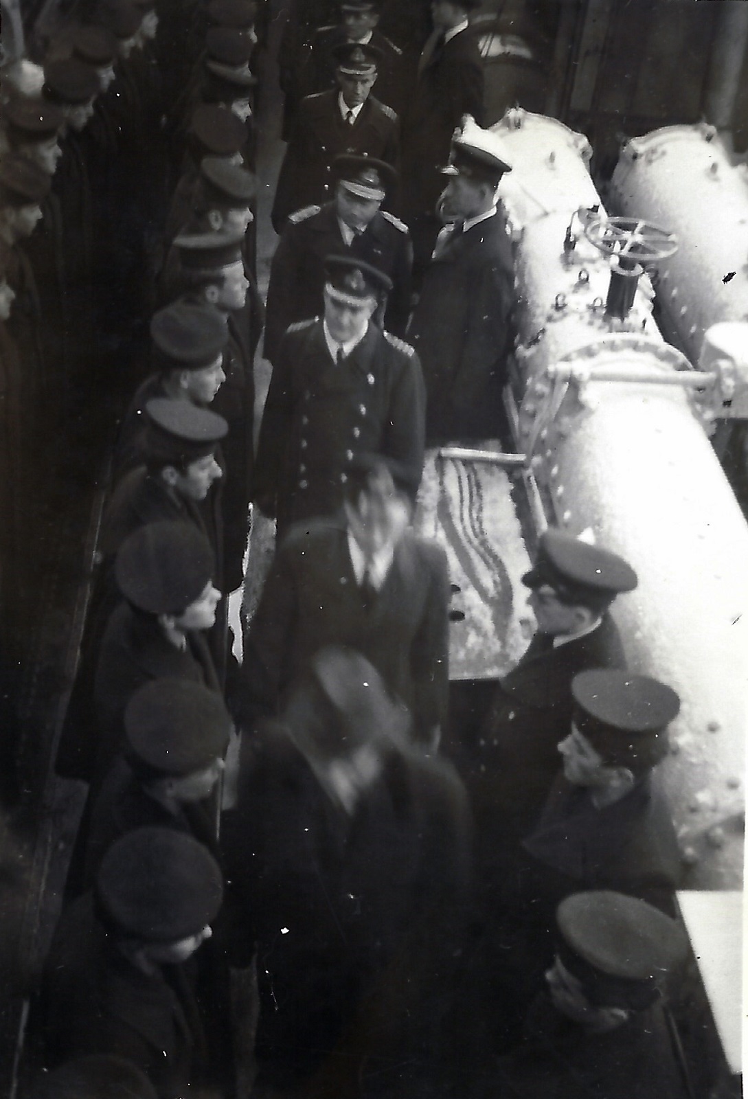 (JB34-JB36) Unknown dignitary visiting HMCS RESTIGOUCHE and addressing the crew