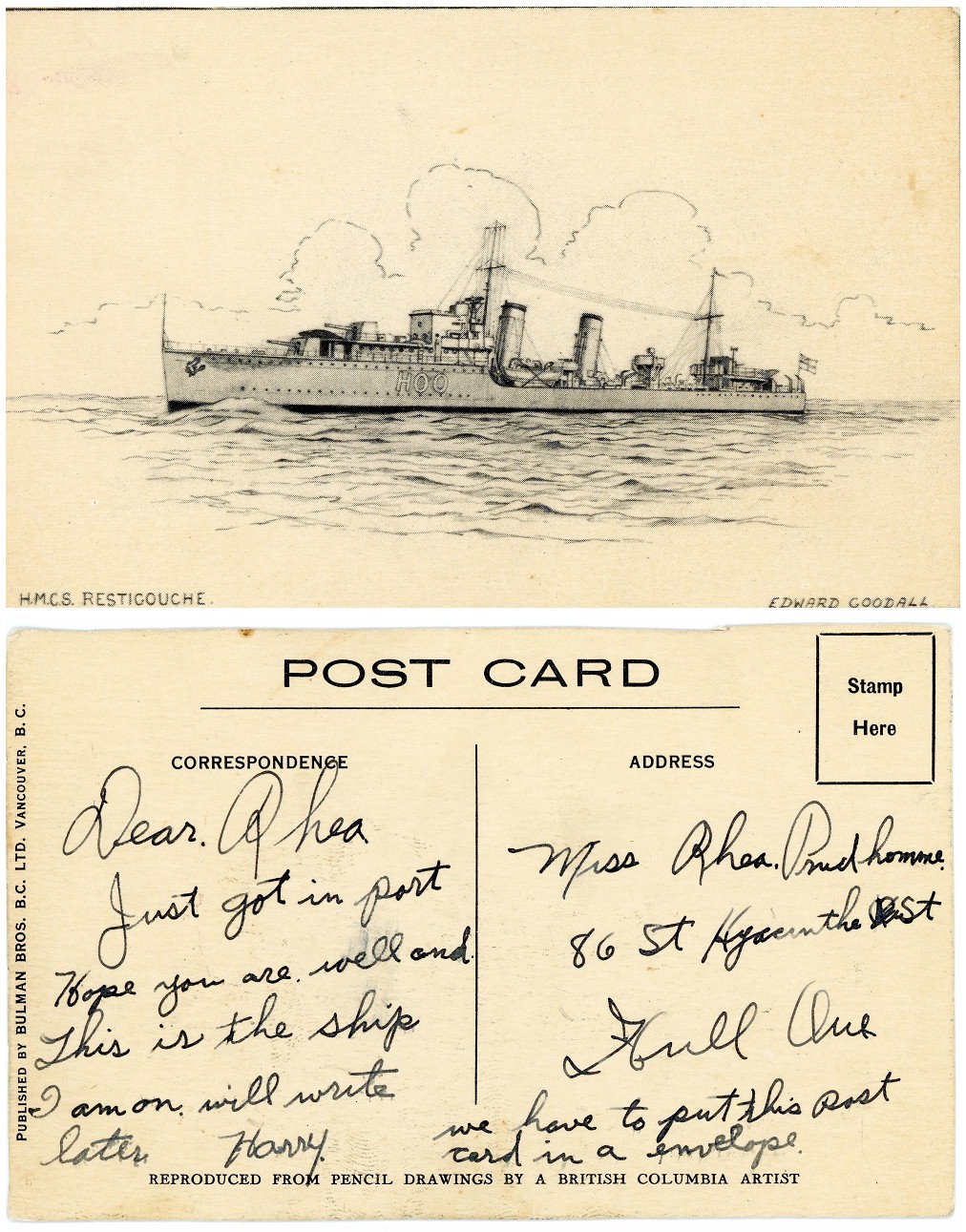 (RGH016) HMCS RESTIGOUCHE postcard from Harry Swanson to his parents // From the collection Harry Swanson // Courtesy of Jason Belanger