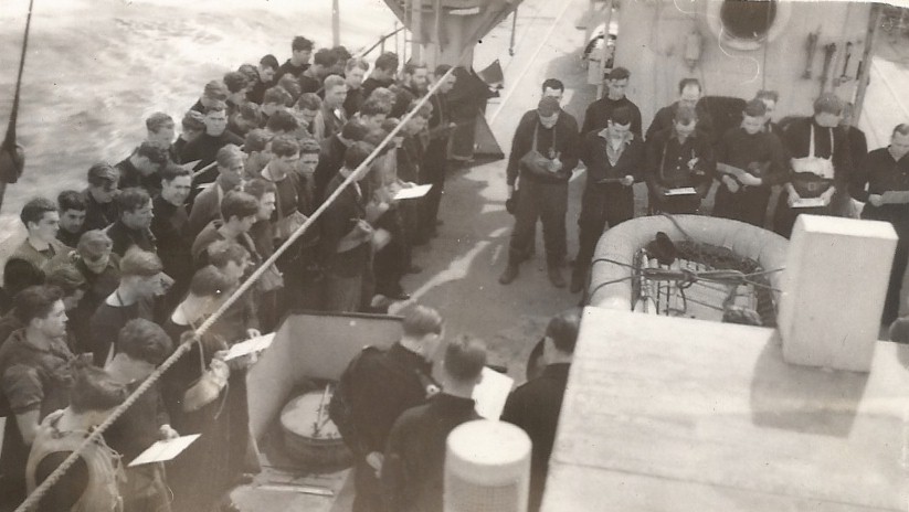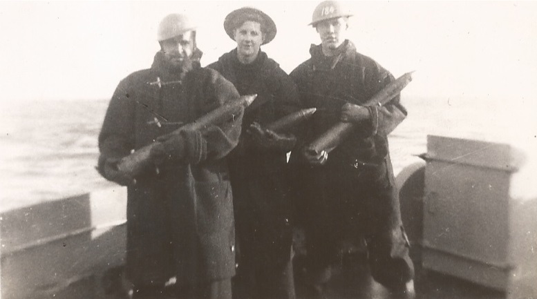 (WP03) Easter Sunday Church service on HMCS RESTIGOUCHE H00 (WP05) Gun crew on HMCS RESTIGOUCHE H00 circa 1943 (WP06) William (Bill) Parkin on HMCS RESTIGOUCHE H00 circa 1943