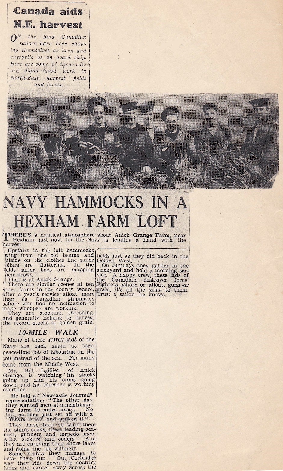 The 'On the Farm' photos were taken in Hexham, England - the ship was in for repairs and some of the crew spent time working on local farms. From the collection of William (Bill) Parkin, LS, RCNVR Courtesy of John Parkin