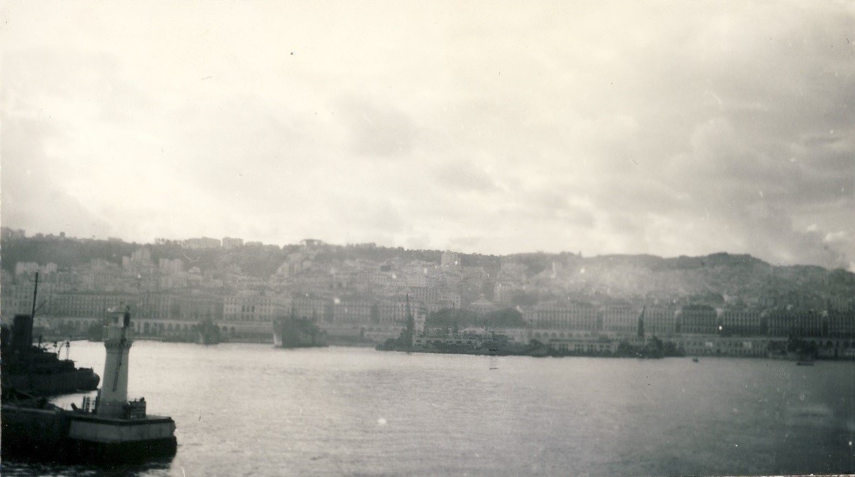 March 1943 - convoy from Liverpool to Algiers (OM11-OM13) Algiers "We were the first Canadian destroyer to enter the Mediterranean. Algiers was a very nice looking place from the harbour, but rather dirty when ashore" (OM14) Cruiser HMS Dido tied up at Algiers while we (HMCS RESTIGOUCHE) were there