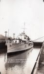 (FM716) HMCS RESTIGOUCHE H00 passing under the Jacques Cartier bridge in Montreal, QC. Note: this photo has appeared in other collections as a postcard print (FM717) HMCS RESTIGOUCHE H00 - 1942 (FM718) HMCS RESTIGOUCHE in the slips for repairs