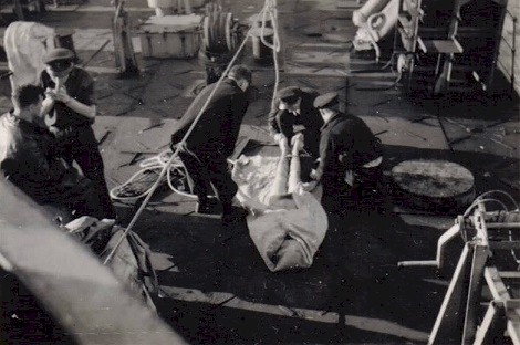 Committal service for U-1209 casualty on HMCS RIBBLE