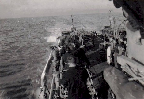 HMCS RIBBLE K525 rescuing survivors from U-1209