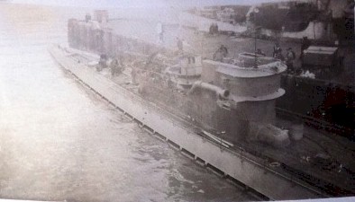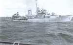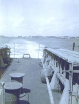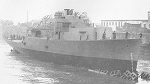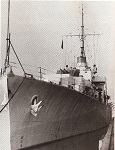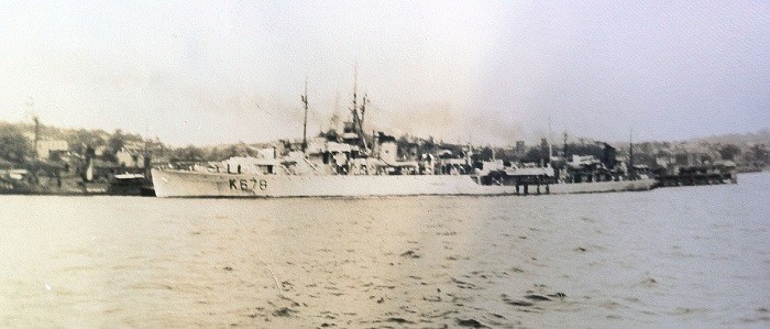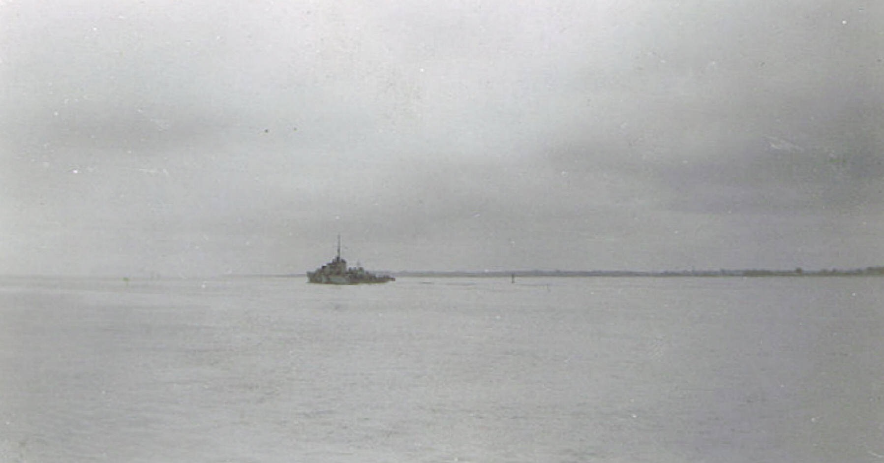 (JM34-JM35) HMCS RUNNYMEDE - photos taken by Therese Murphy, John's wife, from the dock at Cap-de-la-Madeleine, QC as the RUNNYMEDE made its 1st run to sea from the Vickers Yard in Montreal where she was built. John had called ahead to tell his wife that the ship would be passing by.