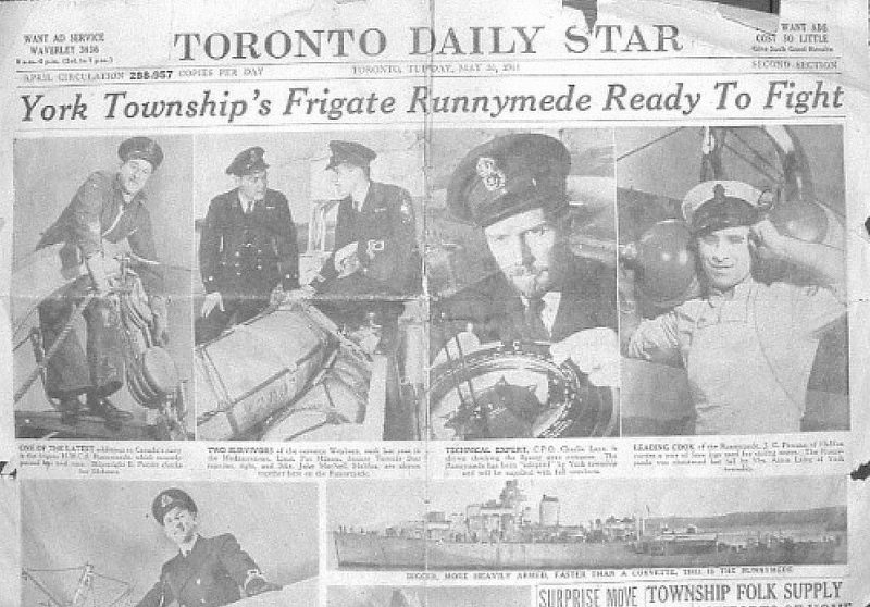(JM36) Headline from the Toronto Daily Star on HMCS RUNNYMEDE'S readiness for sea - 30 May 1944