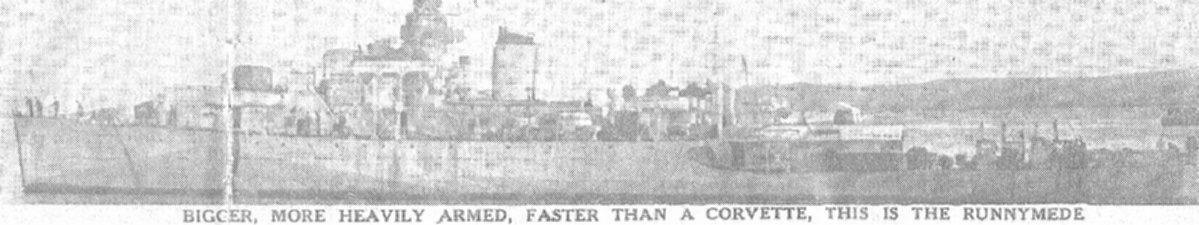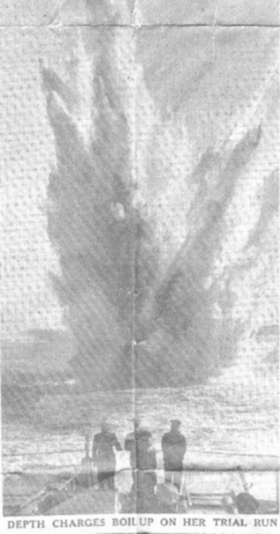 Individual photos from the above Toronto Daily Star headline article (JM42) Bigger, more heavily armed, faster than a Corvette, this is the RUNNYMEDE (JM43) Depth charges boil up on her trail run