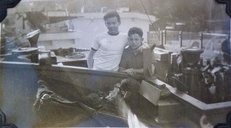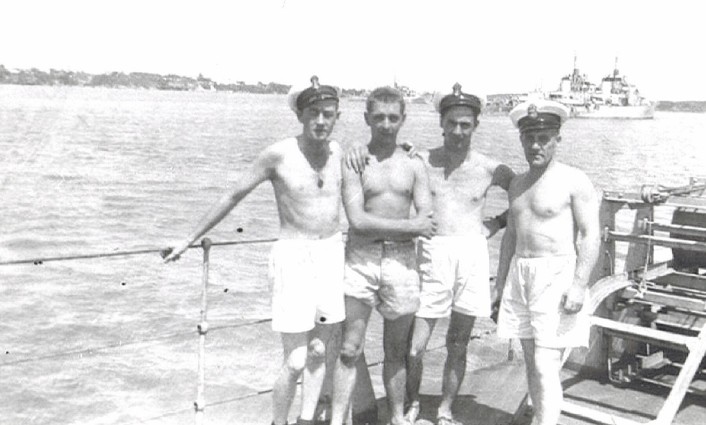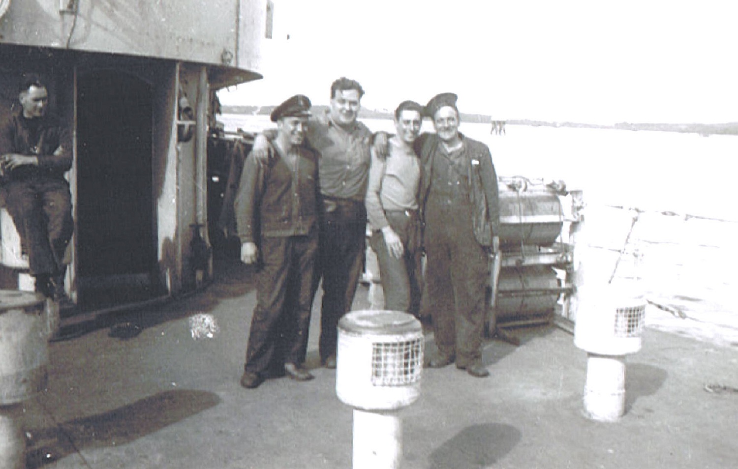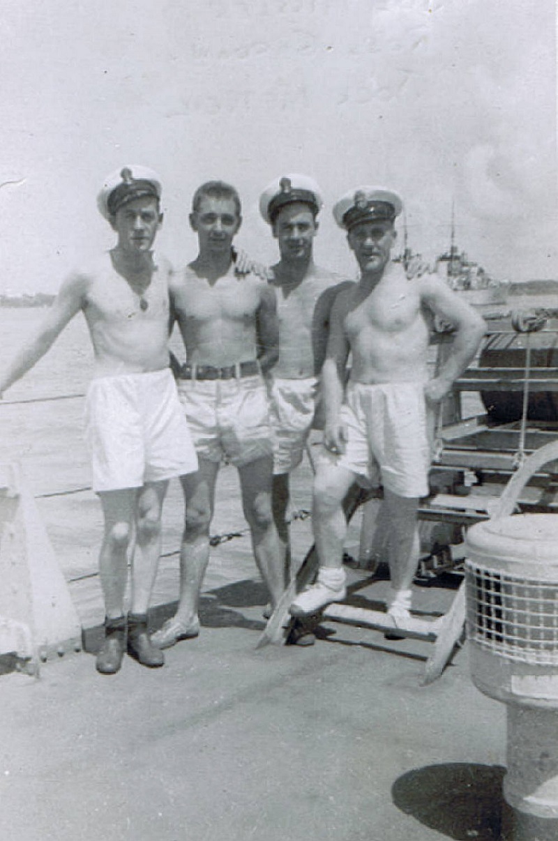 (JM49-JM50) L-R: John Murphy, Joe Missler, Ross Gordon and John McNeil on HMCS RUNNYMEDE K678 in Bermuda