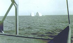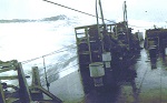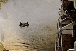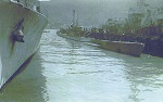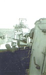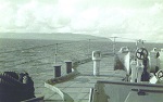 (KW61) Looking aft from the fo'c's'le of HMCS RUNNYMEDE K678 (KW62) Taylor on the gangway (KW63) "Entering Halifax harbour" - Gate vessels open the anti-submarine barriers as HMCS RUNNYMEDE enters Halifax Harbour