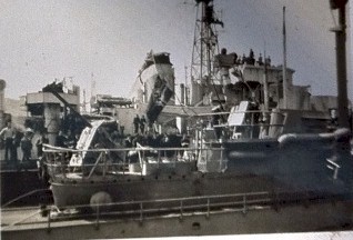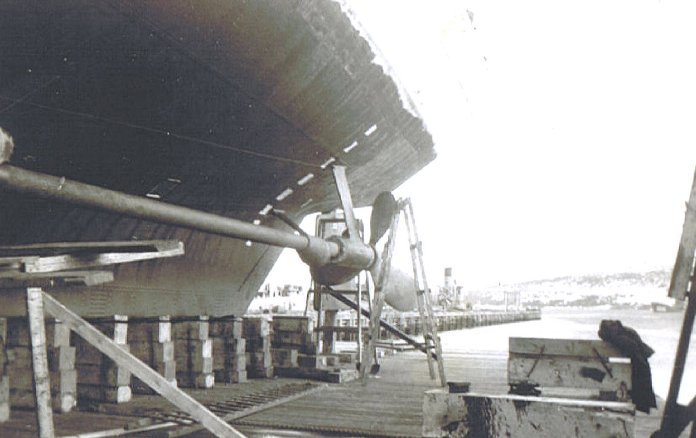 HMCS RUNNYMEDE K678 in refit (JM75) HMCS RUNNYMEDE K678 in the slips at Bay Bulls, Nfld (JM76) John Kervin and Ross Gordon by HMCS RUNNYMEDE while in the slips at Bay Bulls, Nfld (JM77) HMCS RUNNYMEDE K678 in the slips at Bay Bulls, Newfoundland, Nfld (JM78) Unknown sailor beside the port screw of HMCS RUNNYMEDE while in the slips at Bay Bulls, Nfld (JM79) Joe Marshall beside the port screw of HMCS RUNNYMEDE while in the slips at Bay Bulls, Nfld