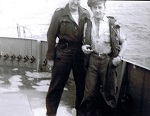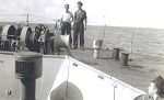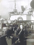 (JM90) Frank Dowman on HMCS RUNNYMEDE K678 (JM91) Arch Chambers and John Murphy by the after gun mount on HMCS RUNNYMEDE K678 (JM92) Back row L-R: Bob Vreeland, George Crobar, Tiny Faloona, Sandy Sandever, Curly Doyle, Chips Pottier, Bill Fisher, George Wells - Front row L-R: Jerry Bowers, Frank Carey, Norm Swan, Jim Bullis (Shocks), Dick Hayward, Bert Hazelwood, Bill Olmstead on HMCS RUNNYMEDE K678 (JM93) Tiny Faloona (left) and unknown shipmates on the quarterdeck of HMCS RUNNYMEDE K678 (JM94) L-R: Tiny Faloona, John Murphy, with unknown shipmates on the quarterdeck of HMCS RUNNYMEDE K678