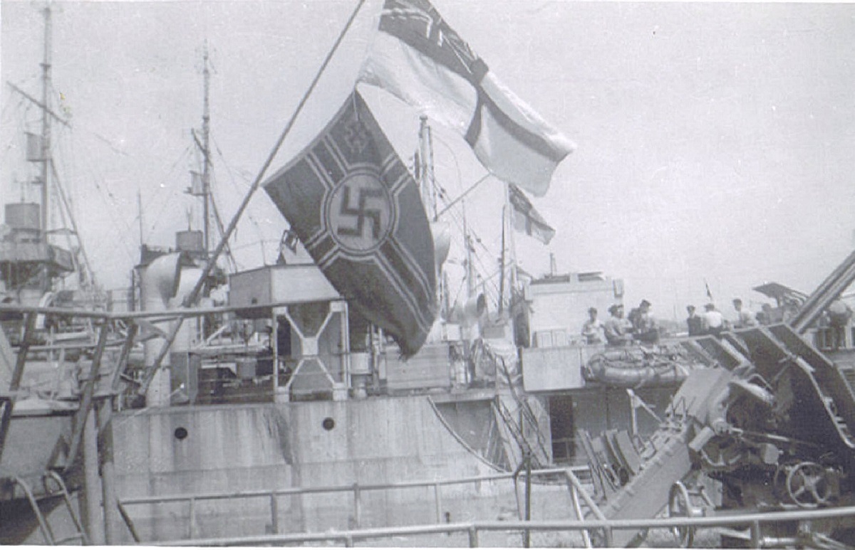 (W56) Surrendered U-boats at Londonderry (KW57) Looking astern from HMCS RUNNYMEDE entering St. John's Harbour (KW58) Ensign of HMCS RUNNYMEDE (KW59) Allan Sevanny (KW60) (L-R) Allan Sevanny, Kirk Wipper